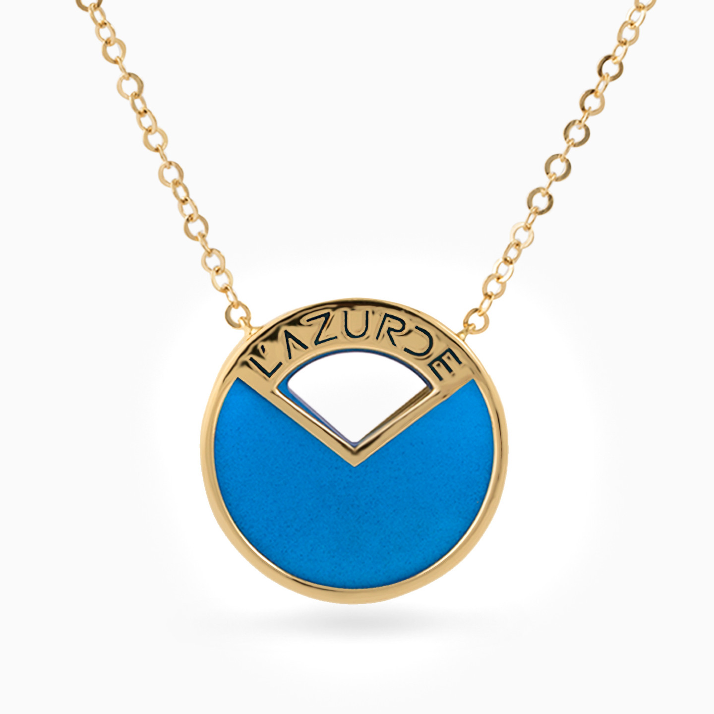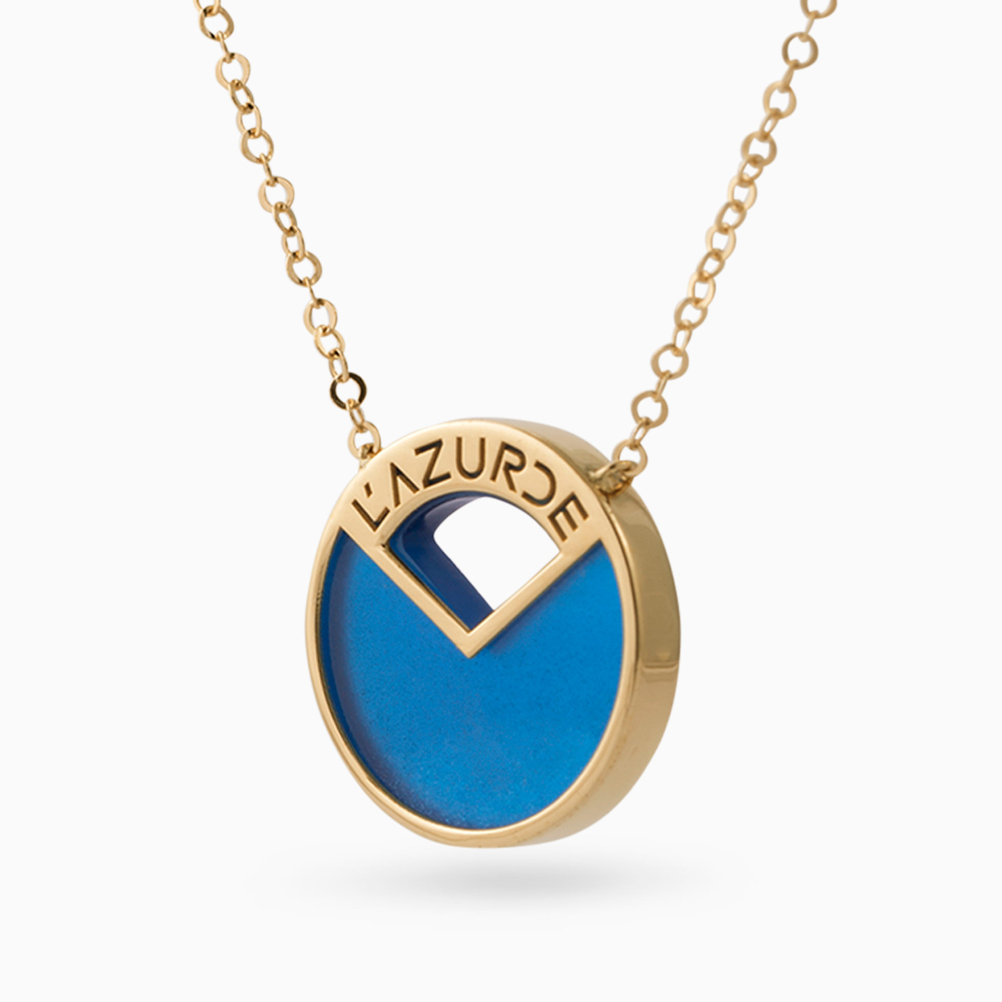 Give your everyday accessories an iconic look with this necklace from L'azurde jewelry. Featuring the brand name engraved in an 18-karat yellow gold base with a blue accent, this piece will look fitting with day to evening outfits. Wear it solo or layer it with multiple chains.