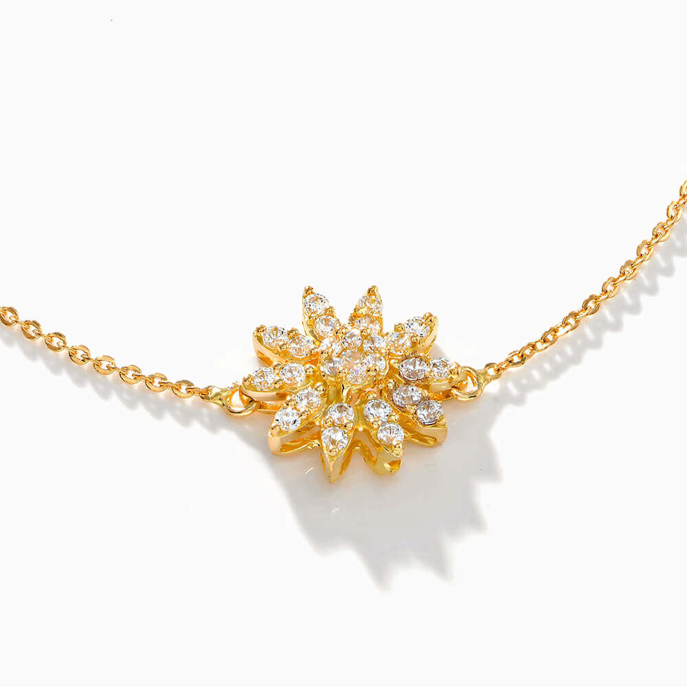 أسورة بسلسلة ذهب زهرة عيار 18 قيراط مزينة بأحجار الزركون