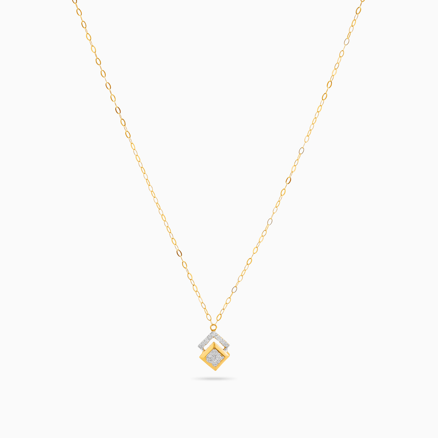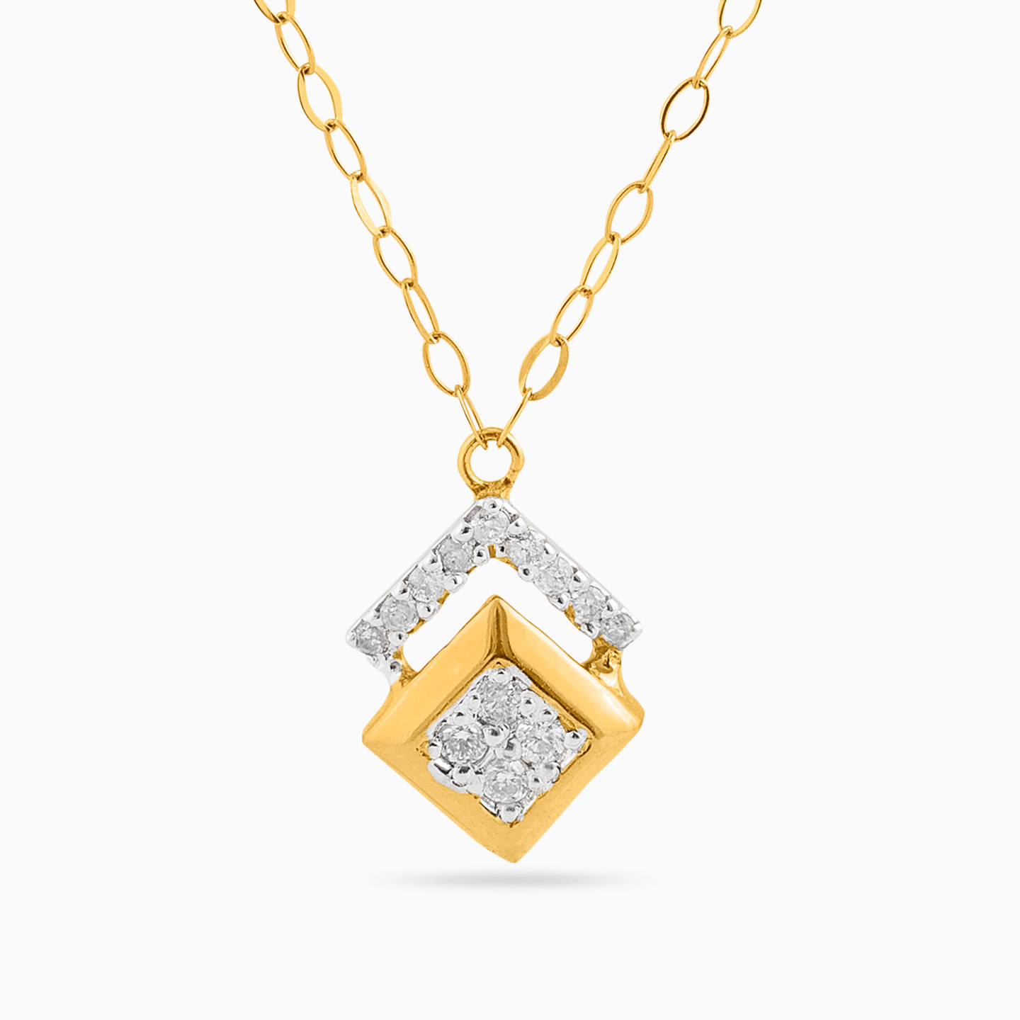 Shine all the way from day to night with this necklace from L'azurde Diamonds. The square shaped overlapping pendant features a stunning line of diamonds as it drops from a dainty 18-karat yellow gold chain. This number will ease itself into your work to evening wardrobe to add a subtle wow appeal every day.