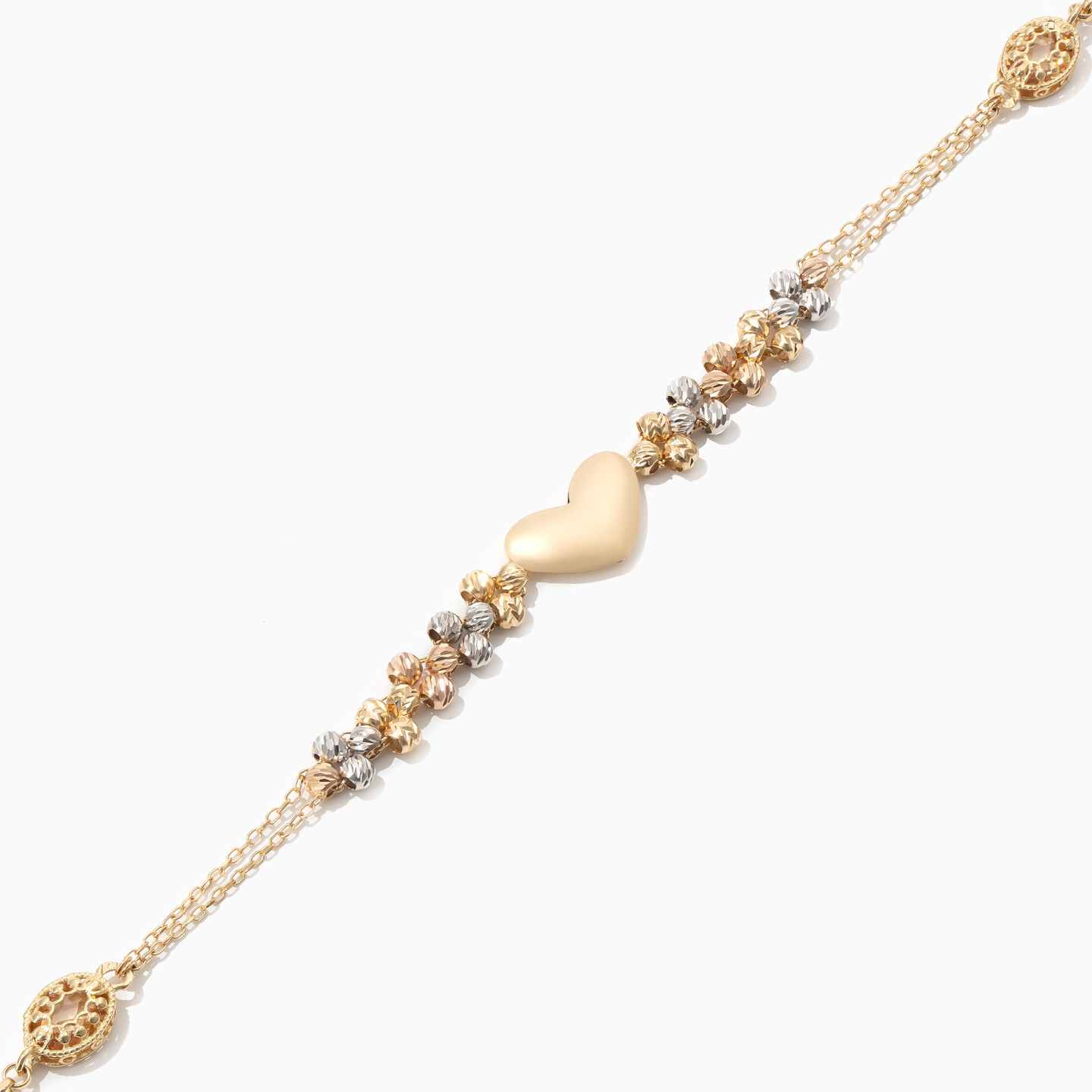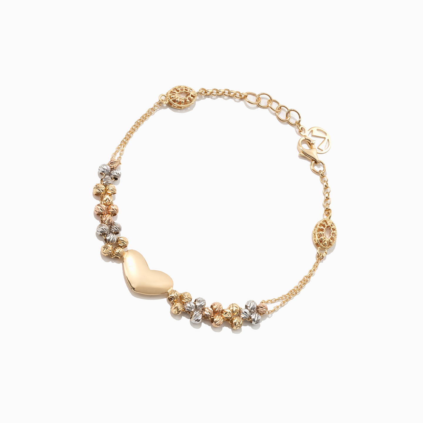 Show your wardrobe some love by adding this gorgeous chain bracelet from L'azurde Gold to your jewelry collection. Meticulously crafted in a mix of 18-karat yellow, white, and rose gold, this feminine bracelet exudes romantic charm with a chic gold heart at the center. Elegant beads, dainty chains, and oval openwork charms add to the beauty of this piece, making it ideal for everyday wear as well as special occasions.