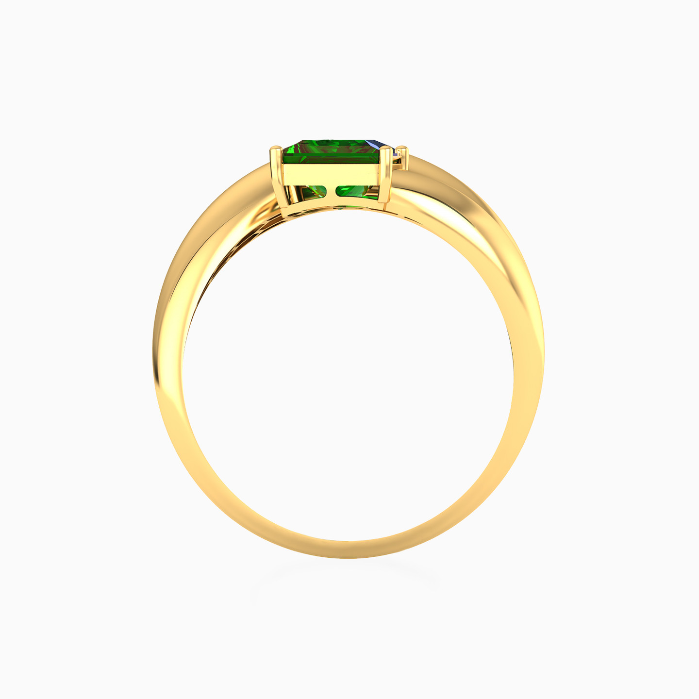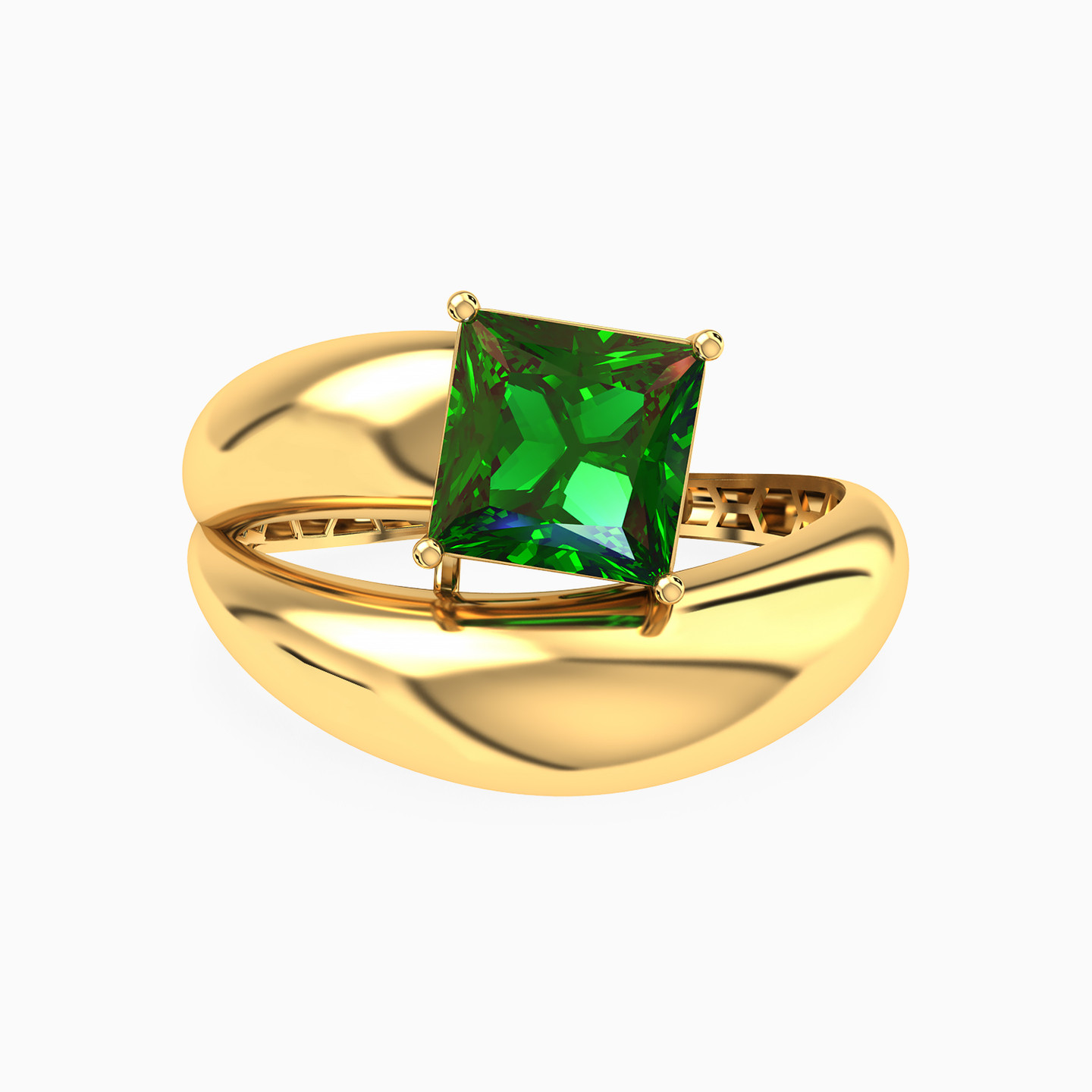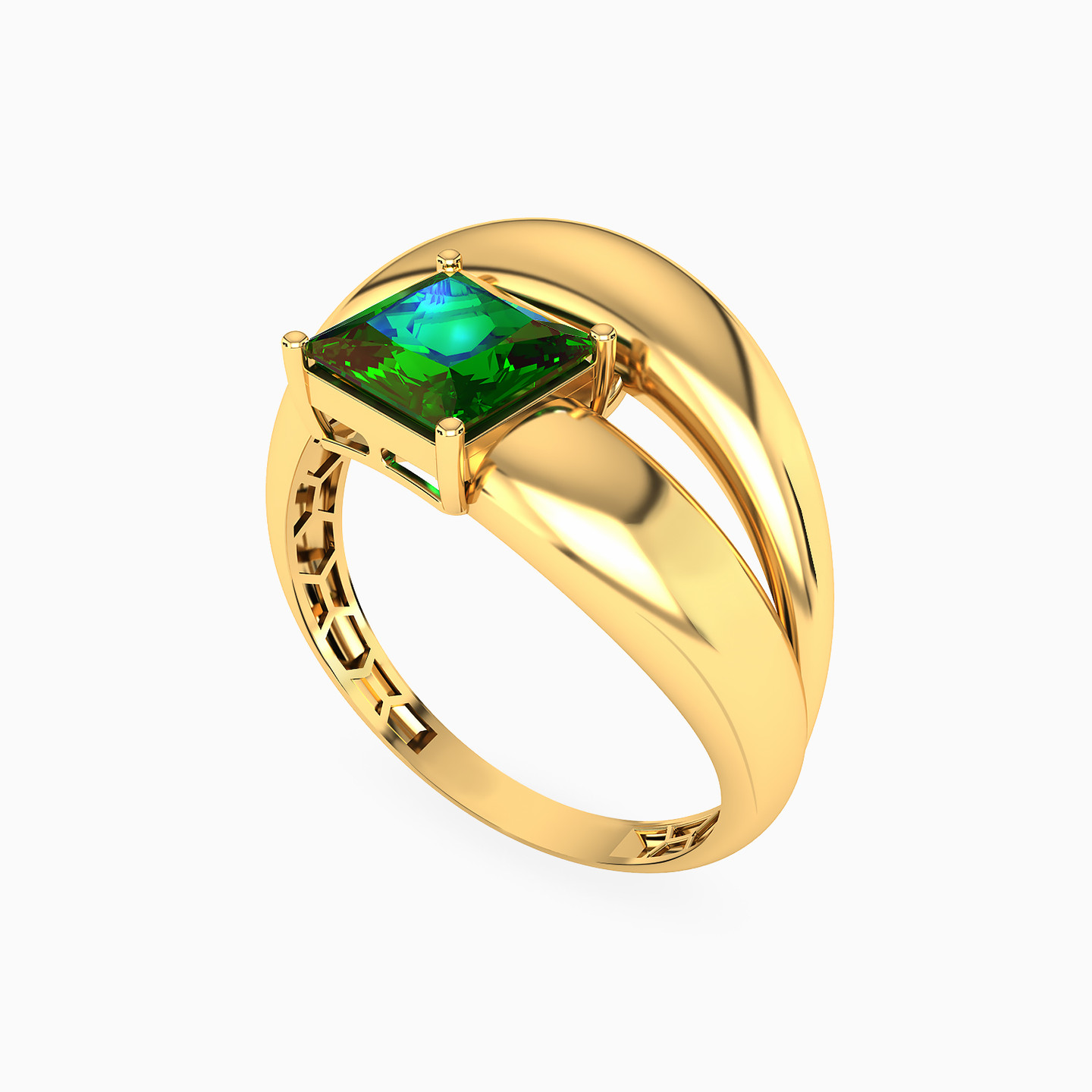 Prepare for your accessory to outshine your best outfit. This eye-catching 18-karat yellow gold ring from L'azurde Gold will instantly elevate any look with its shimmering swirl band and mesmerizing square-shaped vibrant green colored stone center. We love this gorgeous ring with elegant evening attire as well as casual denim wear.