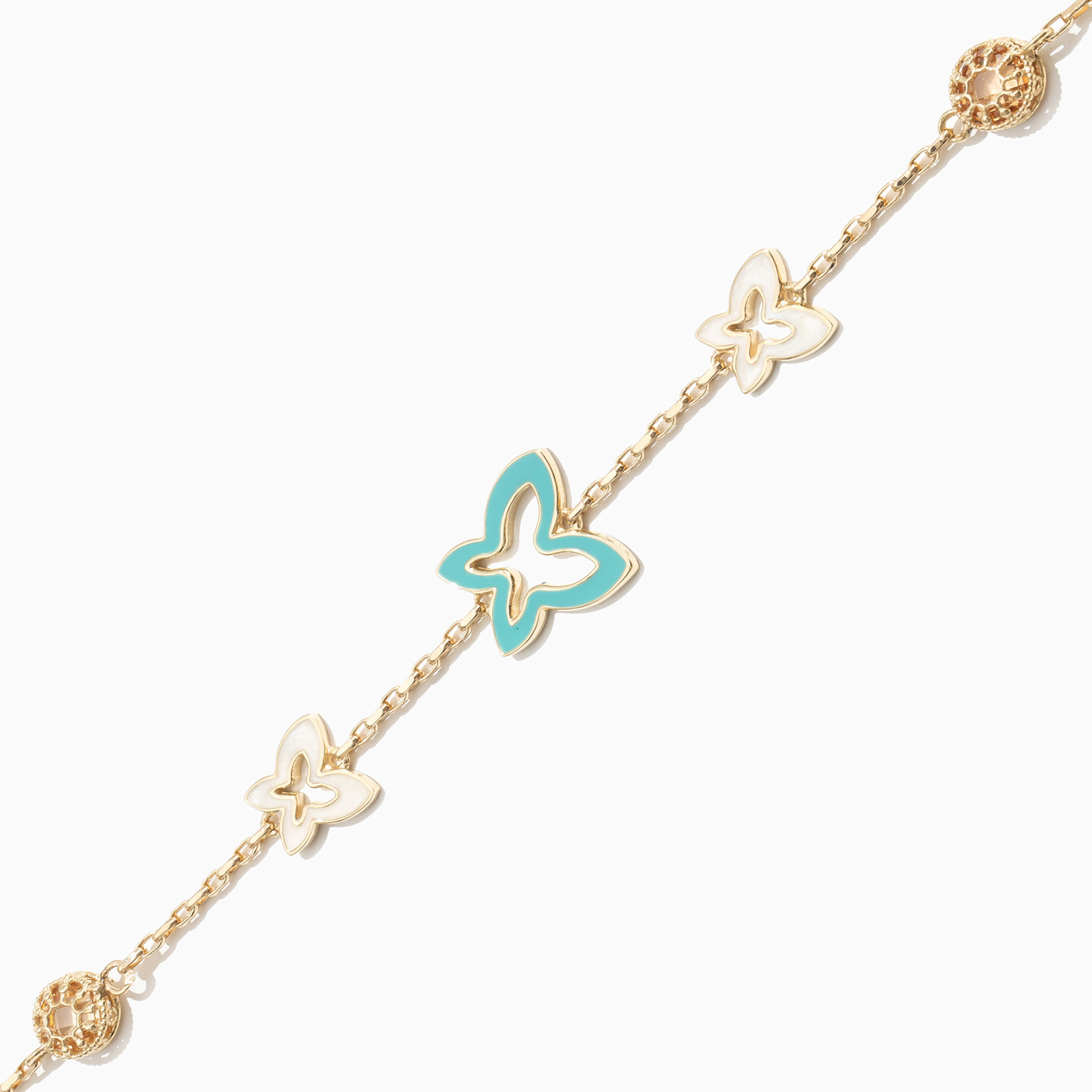 Add carefree beauty and sophistication to your wrist with this stunning butterfly bracelet from L'azurde Gold. Elegant golden charms and graceful enamel-coated colored butterflies adorn this stunning bracelet cast in 18-karat yellow gold. We love this piece with casual denim, a feminine blouse, or a chic suit.