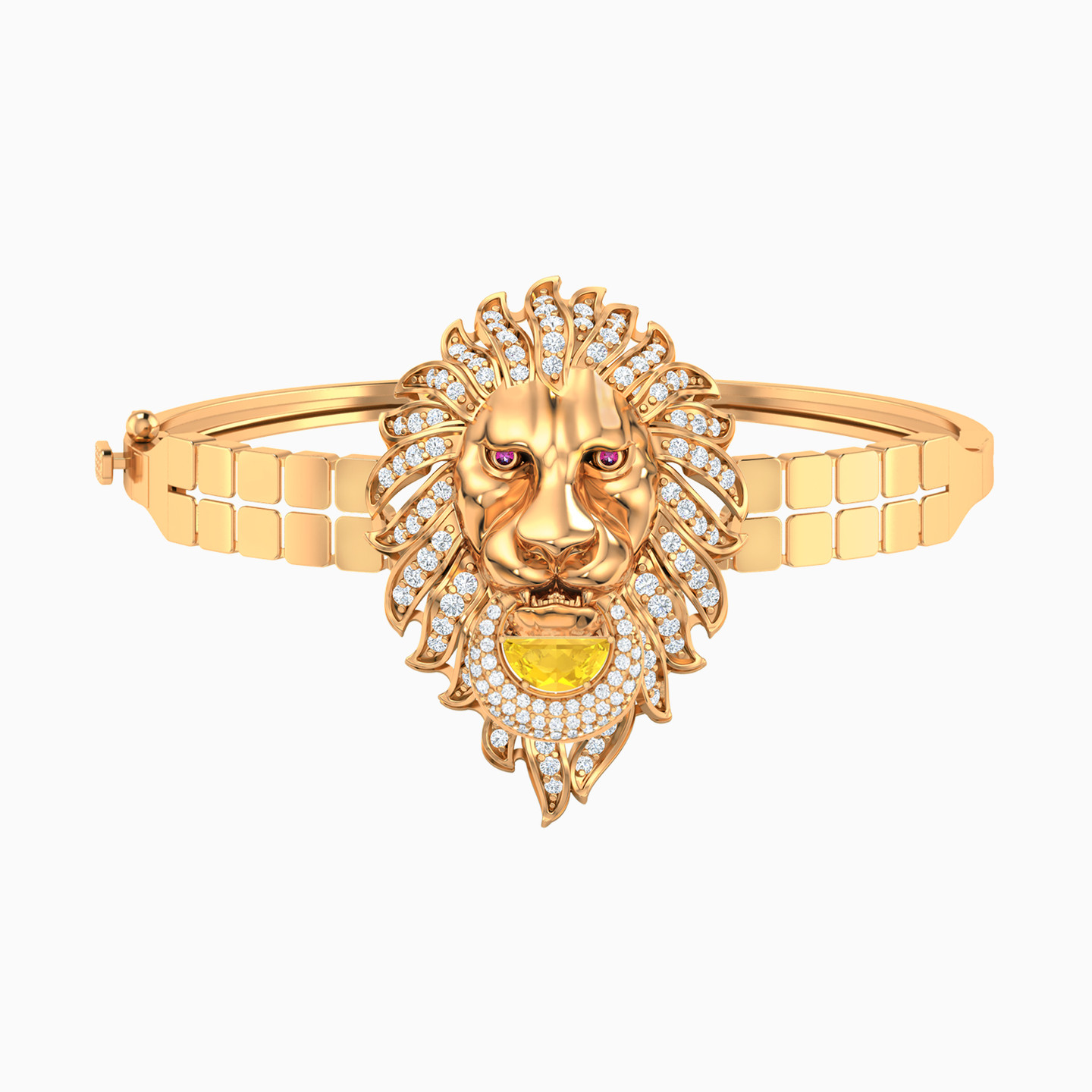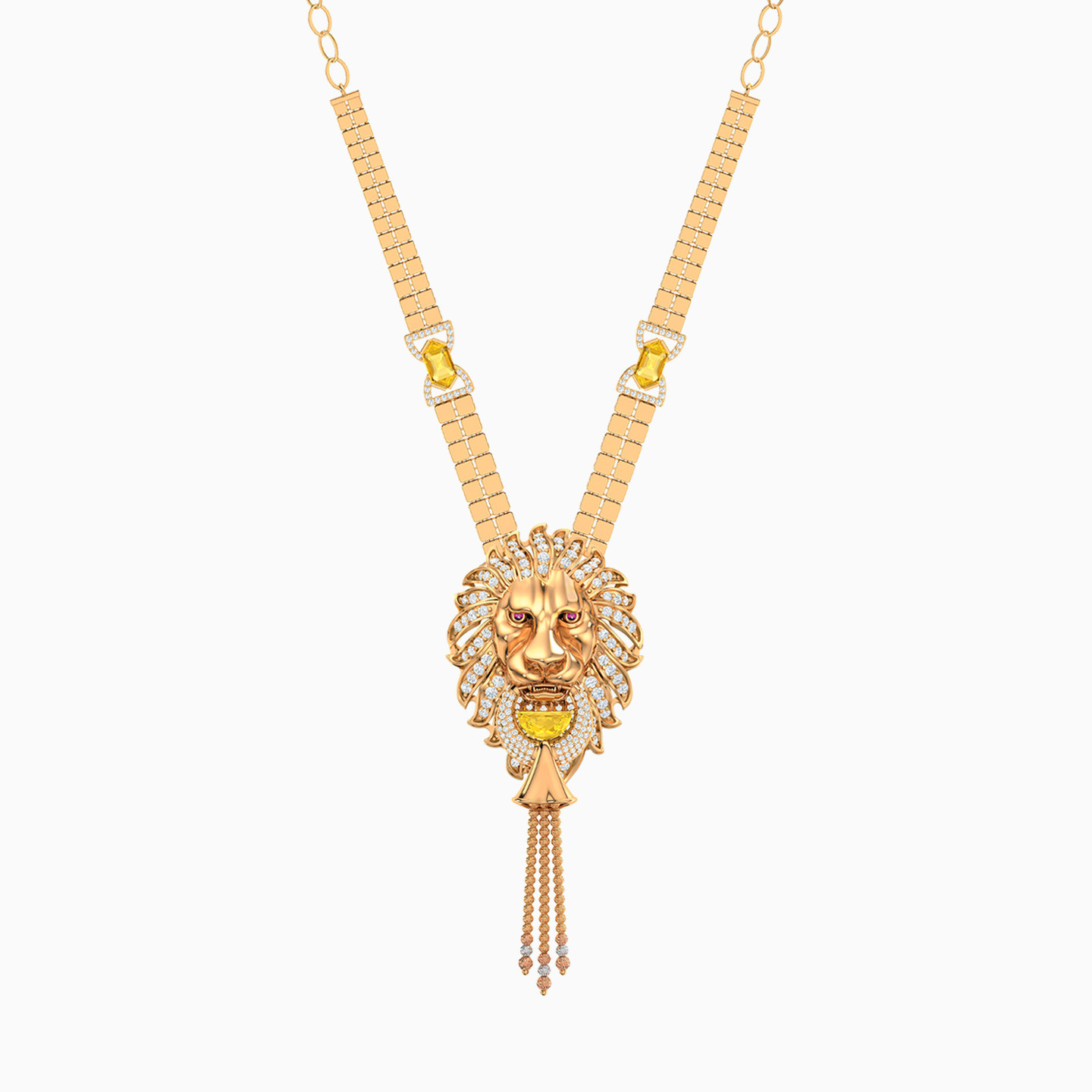 Special occasions call for dramatic and luxurious jewelry like this head-turning colored stones jewelry set from L'azurde Gold. This stunning 21-karat yellow gold set includes a gorgeous lion head pendant necklace, bangle bracelet and statement ring. Each piece features captivating colored stones and dazzling clear stones adorning the lion's mane, with rose and white gold beaded accents on the necklace. This spectacular jewelry set is a must-have for making a grand entrance at every event.