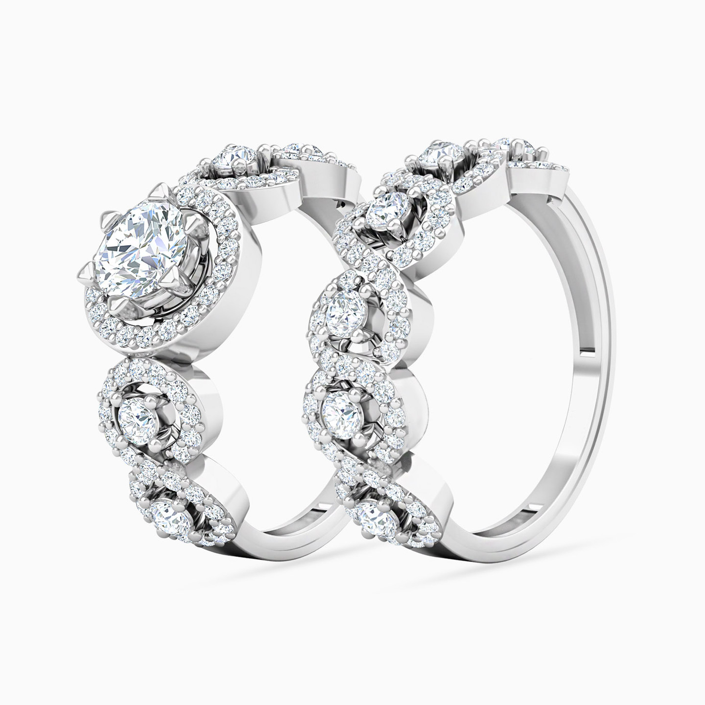 خاتم توينز ذهب دائري عيار 18 قيراط مزين بأحجار الزركون