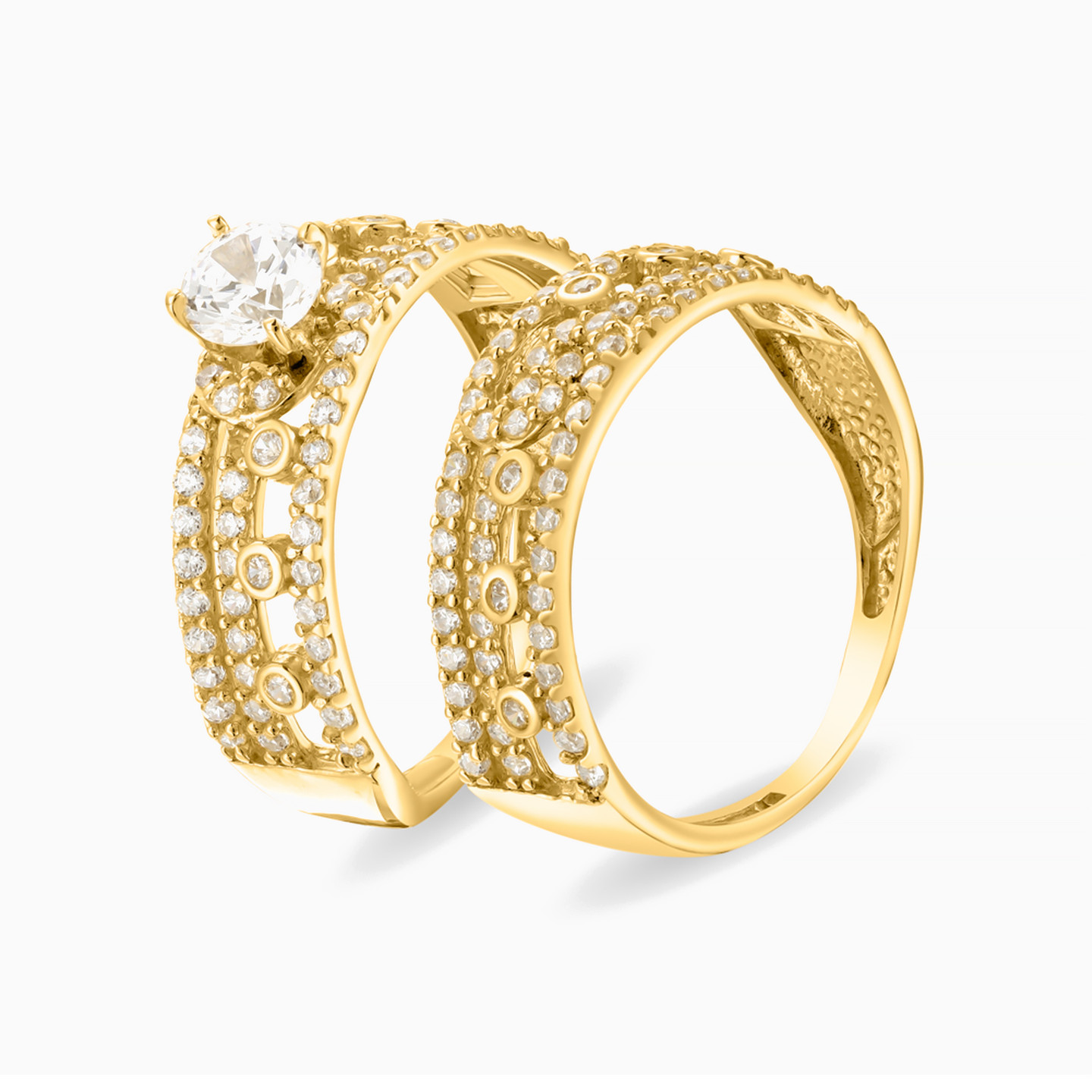 خاتم توينز ذهب دائري عيار 18 قيراط مزين بأحجار الزركون