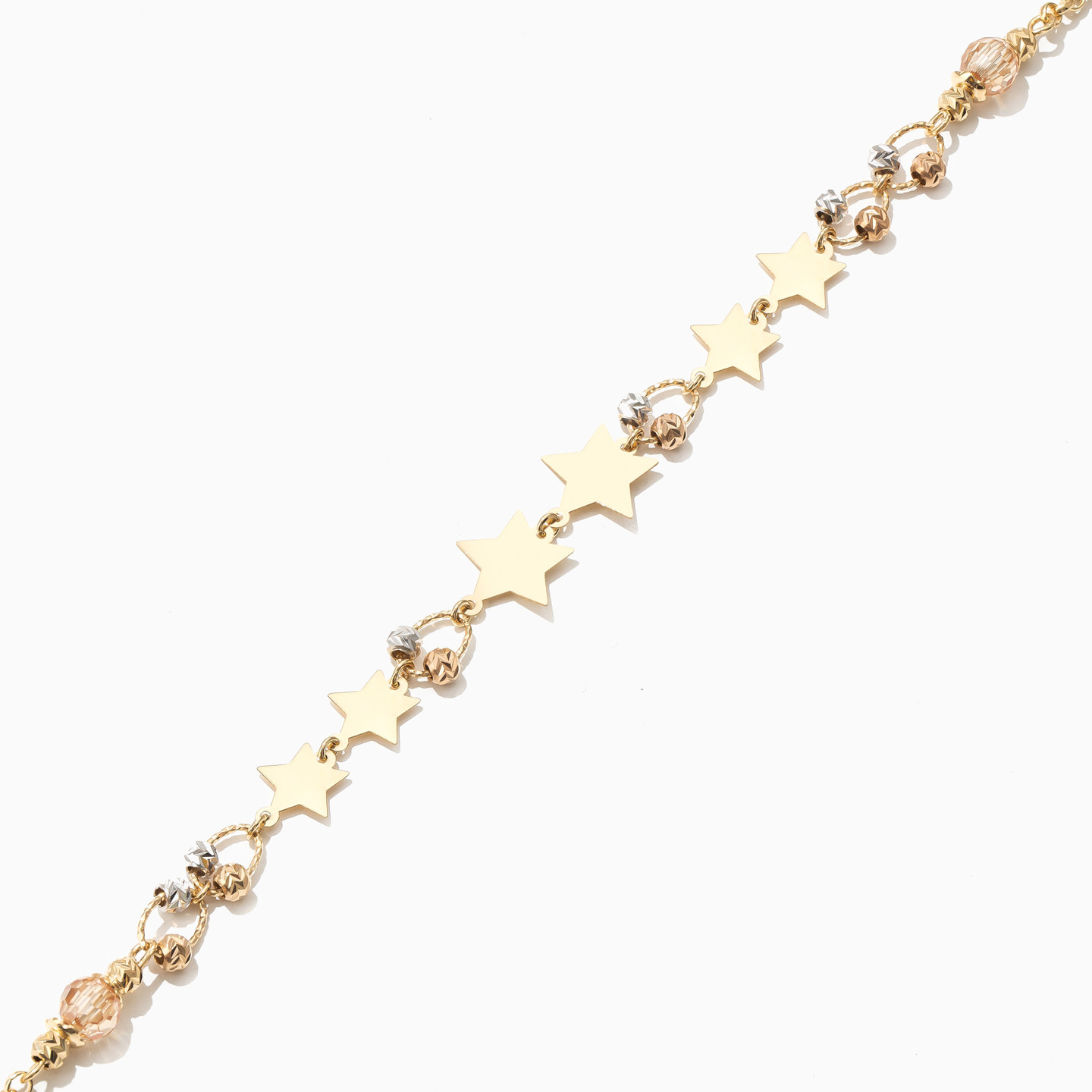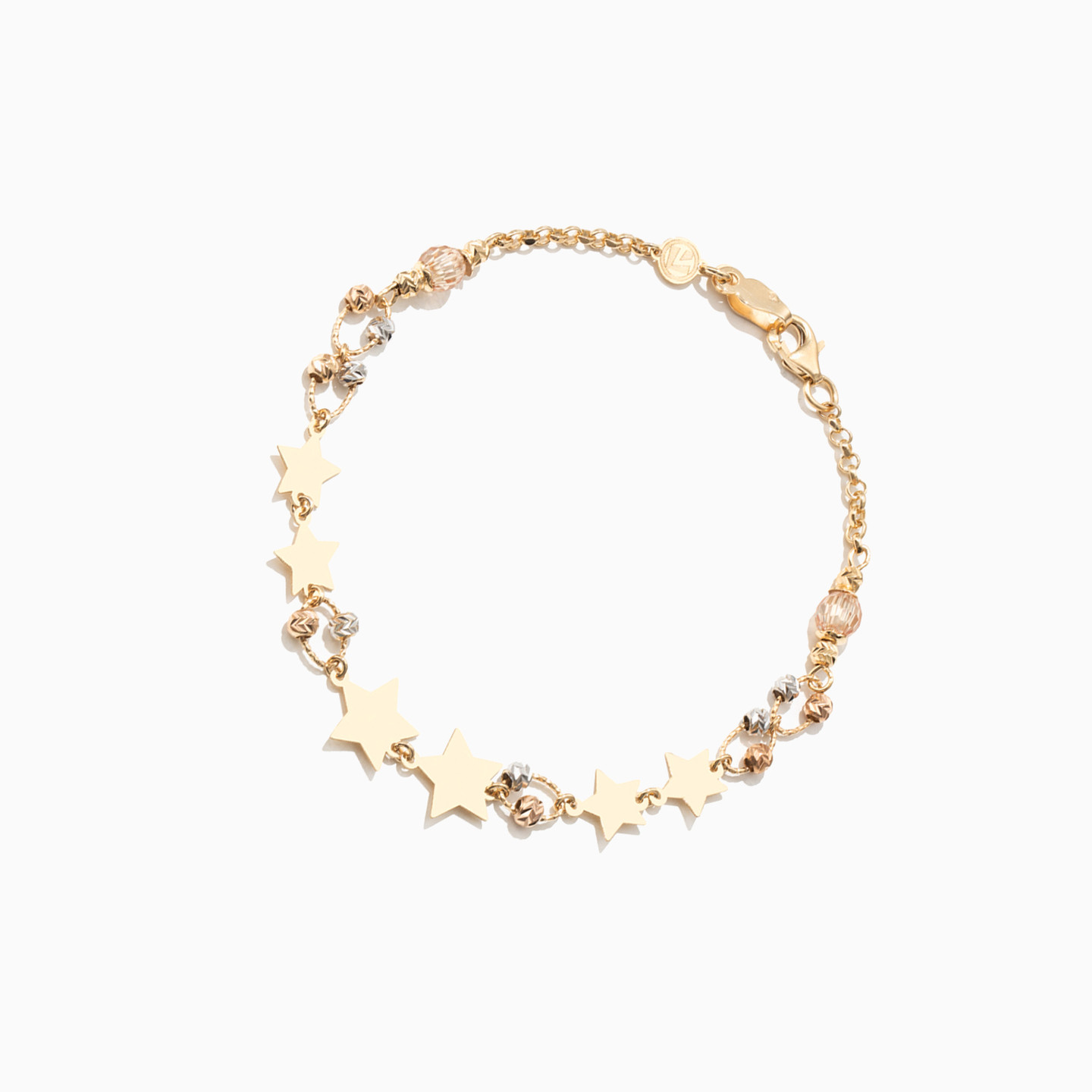 The style stars align when you wear this beautiful bracelet from L'azurde Gold with your work and weekend wardrobe. Fashions in shimmering 18-karat yellow, white, and rose gold, this chic bracelet features elegant beads and striking gold stars. This is the ideal piece to pair with a casual tee or a workday blouse.