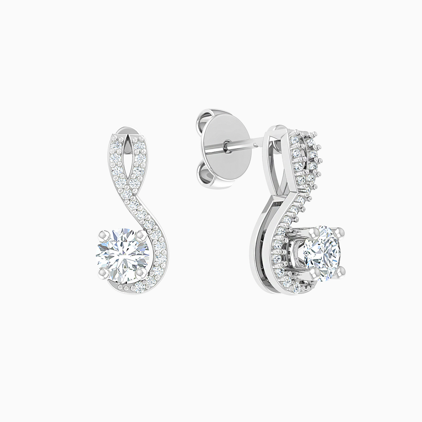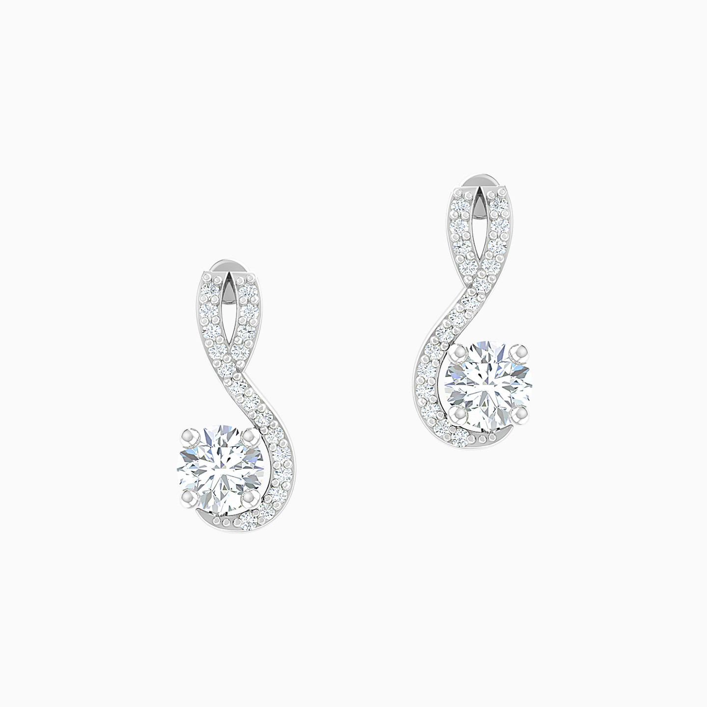 Elevate your daytime and evening looks with these modern diamond swirl earrings from L'azurde Diamonds. Sweet and sophisticated, these elegant earrings showcase diamonds along 18-karat white gold ribbons with captivating diamond solitaires as the finishing touch. Pair these gorgeous stud earrings with a diamond pendant and you’ll be ready for anything.