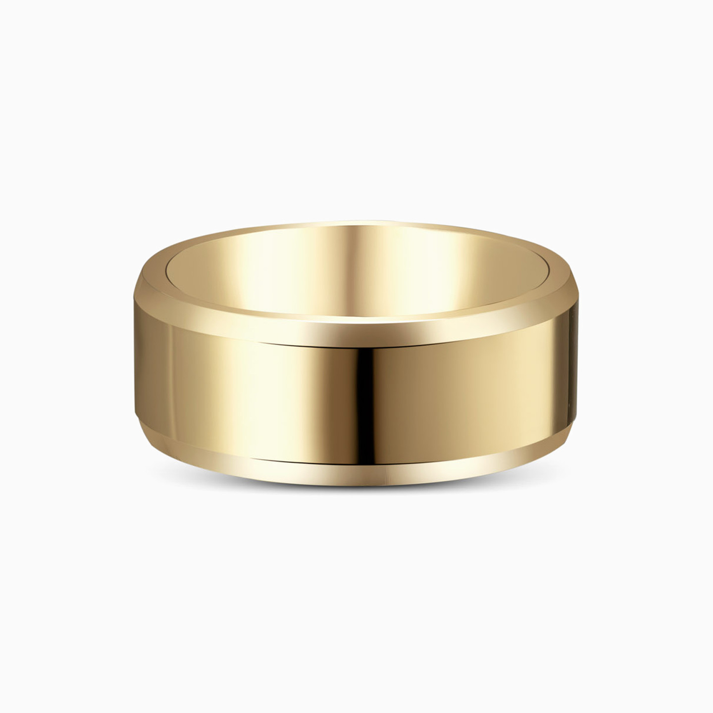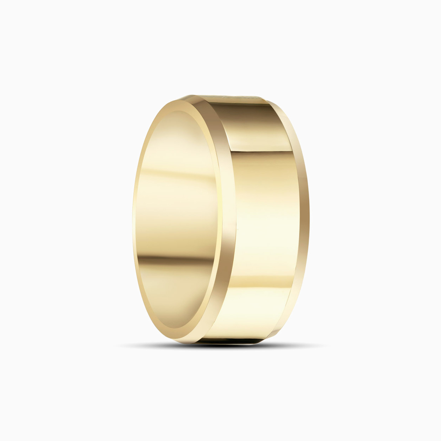 She'll fall for the understated elegance of this sophisticated wedding band by L'azurde Gold. Crafted in shimmering 18-karat yellow gold with a chic beveled edge, this stylish band is timeless and lovely. The sleek design will beautifully enhance any gold ring in her collection.