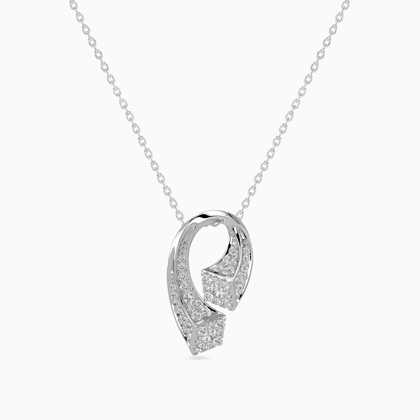 Contemporary and classy, this necklace from L'azurde Diamonds is a stunner in every way. The curved pendant is decked with brilliant cut diamonds and drops from a dainty 18-karat white gold chain. A fitting choice for everyday wear, this necklace will work beautifully over a V-neckline.