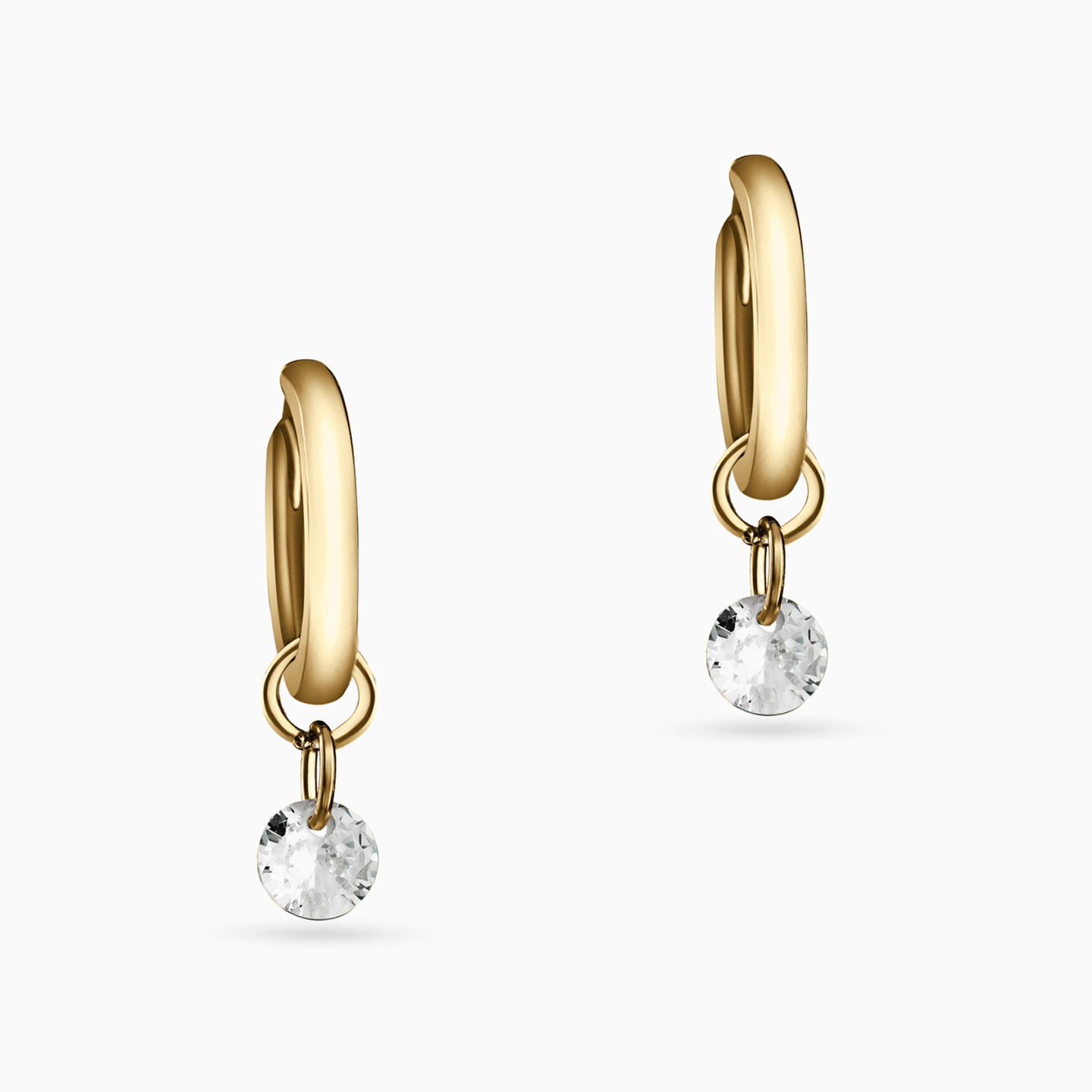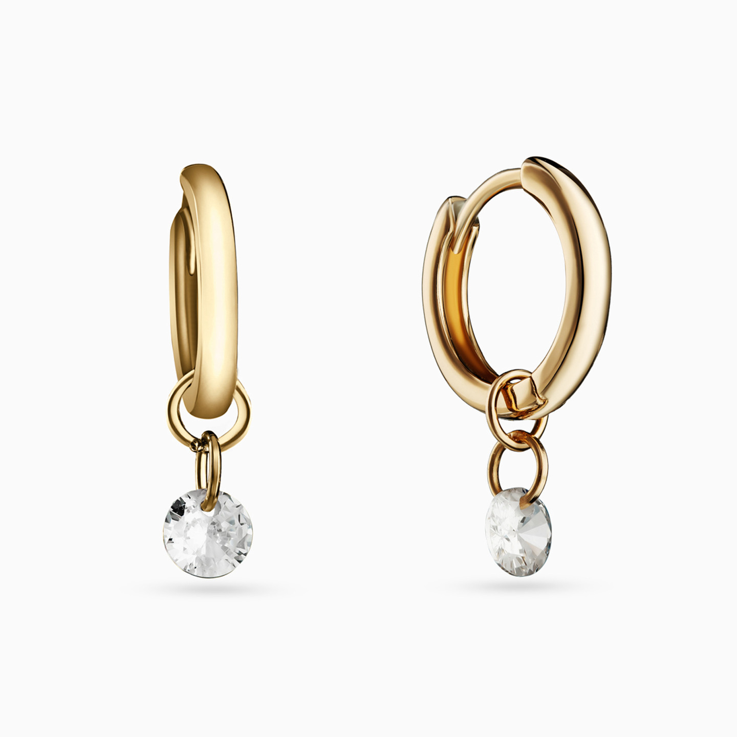 Shine all day and all evening with these petite 18-karat yellow gold-plated earrings from Waves. The sparkling zirconia stone drop gives this pair a graceful touch as it swing from the loops. Wear them solo for a subtle daytime look or pair them with a matching chain to transition into the evening.