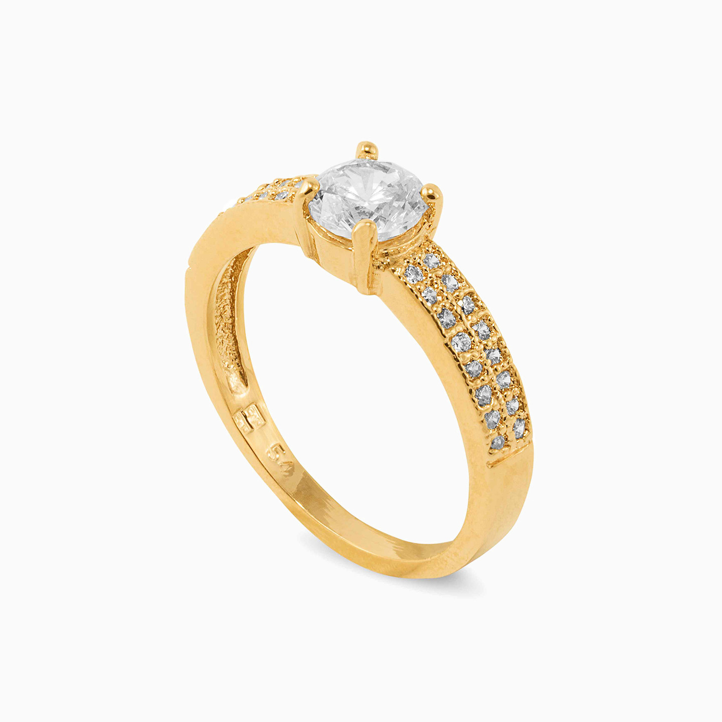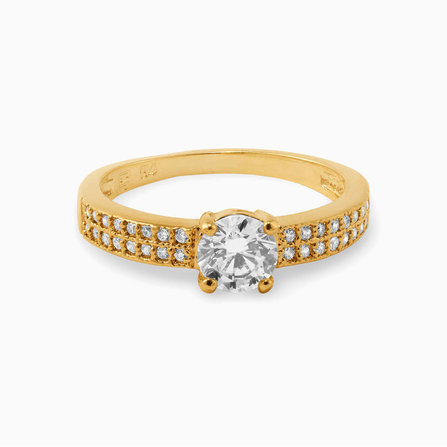 خاتم مطلي بالذهب دائري مزين بأحجار الزركون