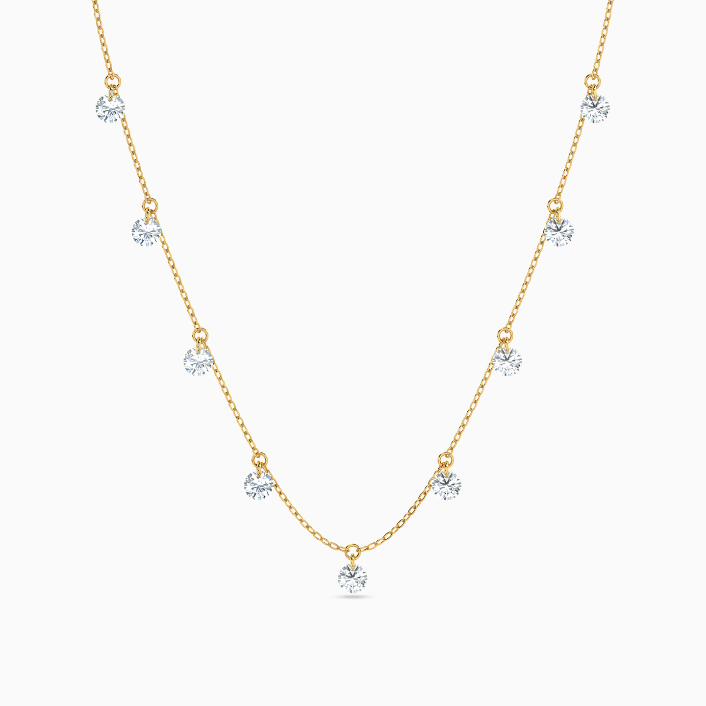 Let the glow follow you everywhere you go with this necklace from L'azurde Instyle. Featuring shiny zirconia charms, lined up on the 18-karat yellow gold chain, this piece is designed to add immense shine to your look. Keep the rest of your accessories minimal to let this piece stand out.