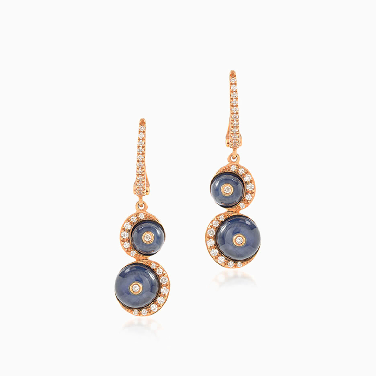 أقراط متدلية ذهب دائرية عيار 18 قيراط مزينة بالألماس وحجر أزرق