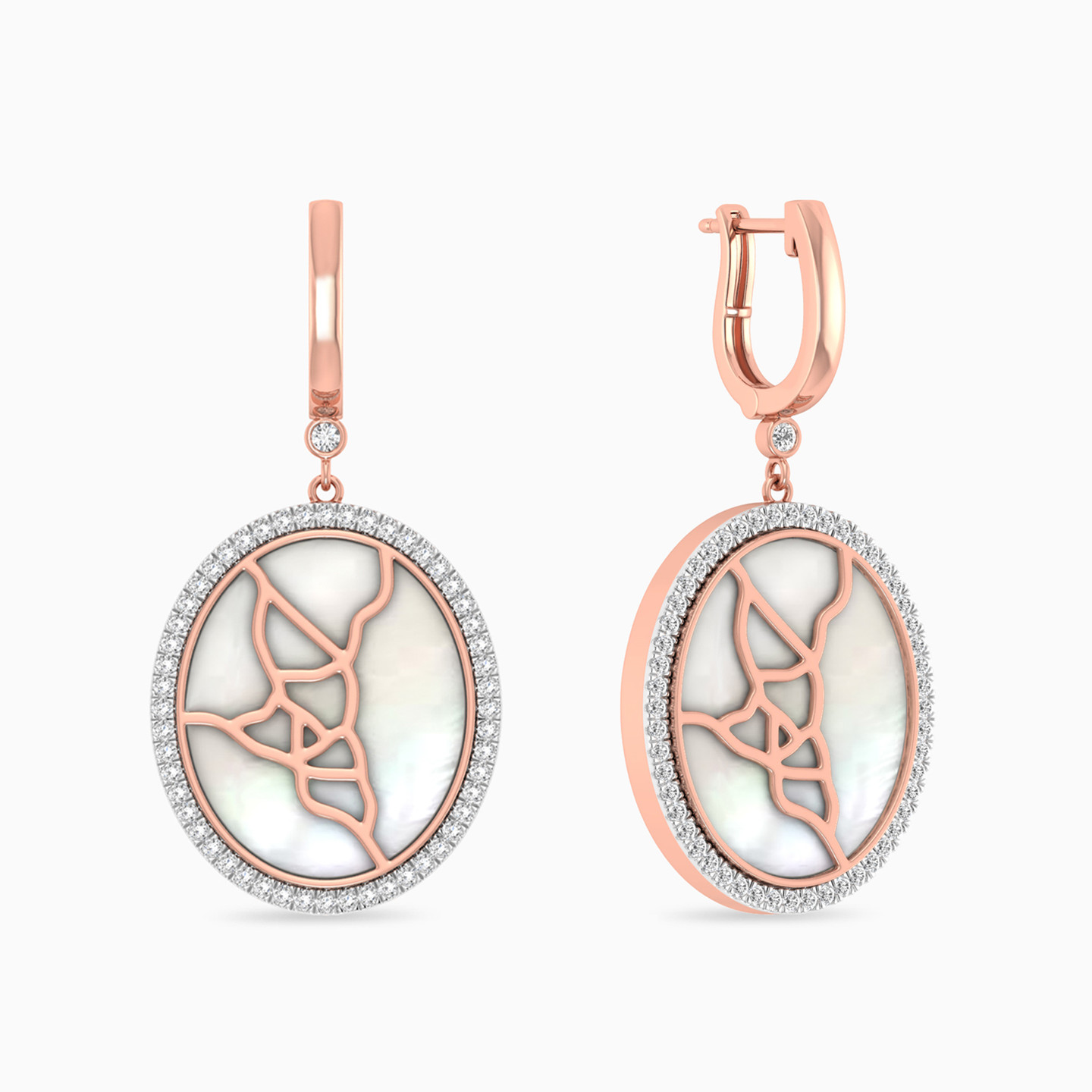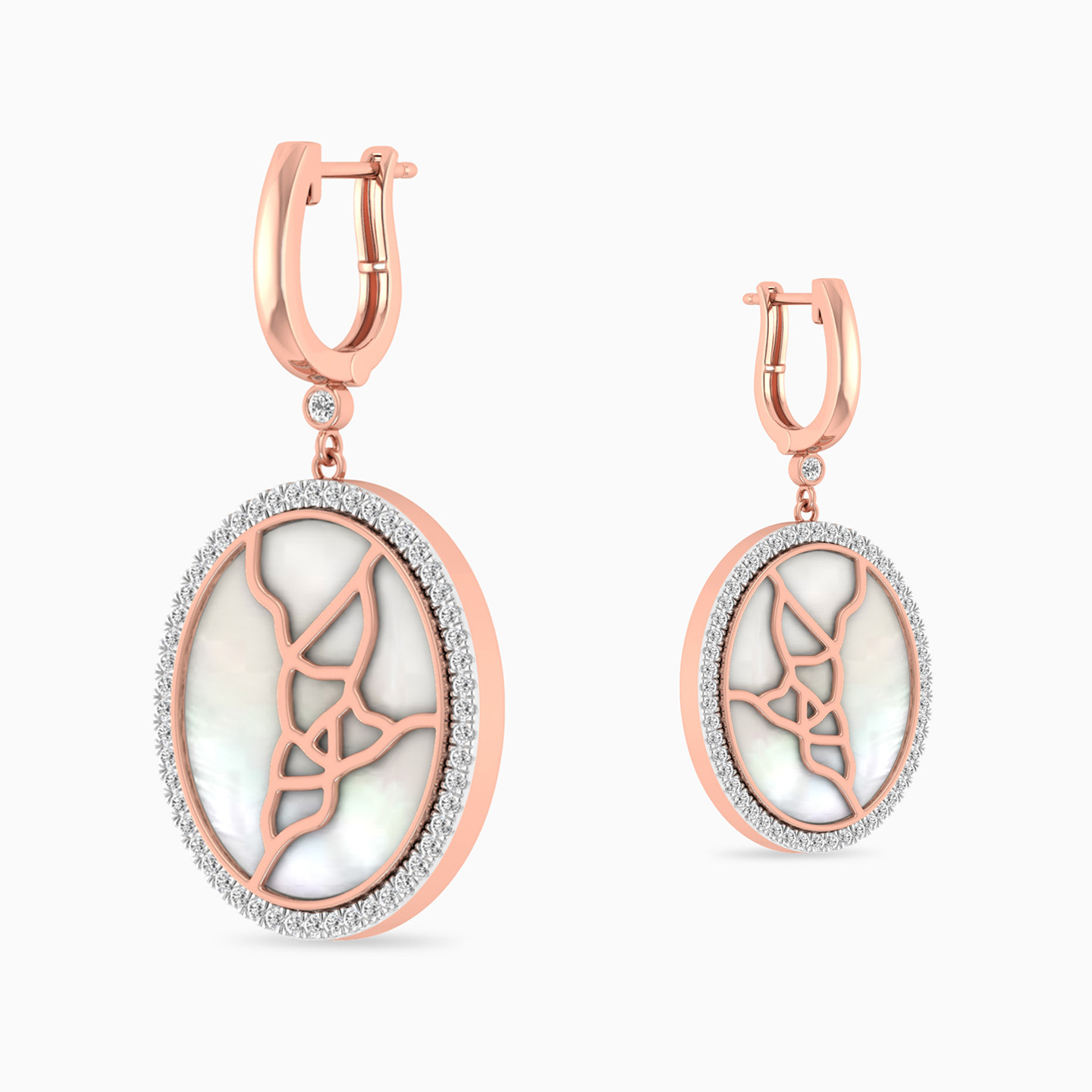 This gorgeous pair of 18-karat rose gold drop earrings from L'azurde Diamonds is a testament to timeless elegance and modern luxury. Each earring features a stunning oval-shaped drop framed by 0.53-carat brilliant cut diamonds, effortlessly adding a touch of sparkle to any ensemble. What sets these drop earrings apart is the abstract-shaped pearl adorning the oval-shaped motif and delicately embraced by intricate rose gold threads, creating a harmonious blend of classic sophistication and contemporary artistry. These enchanting pair of drop earrings are a must-have accessory for any occasion.