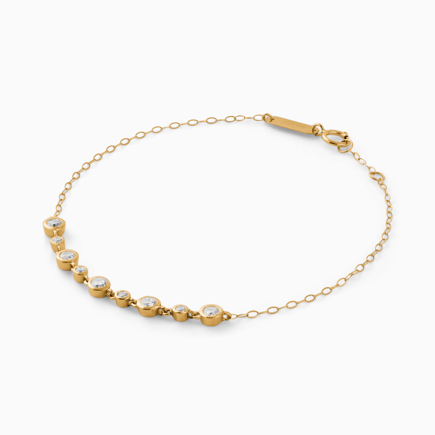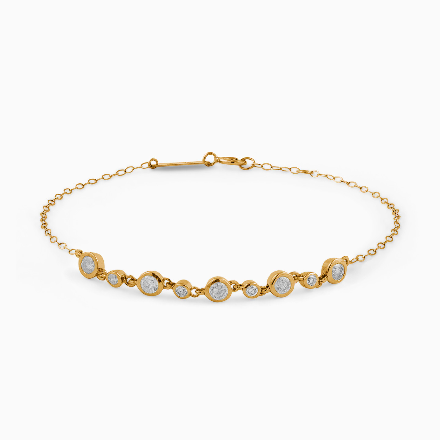 Classic makes a comeback in this bracelet from L'azurde Diamonds. This petite number is cast in 18-karat yellow gold and studded with individual brilliant cut diamonds in round motifs that will sit on the center of your wrist. Wear this as an everyday piece for a minimal sparkle.