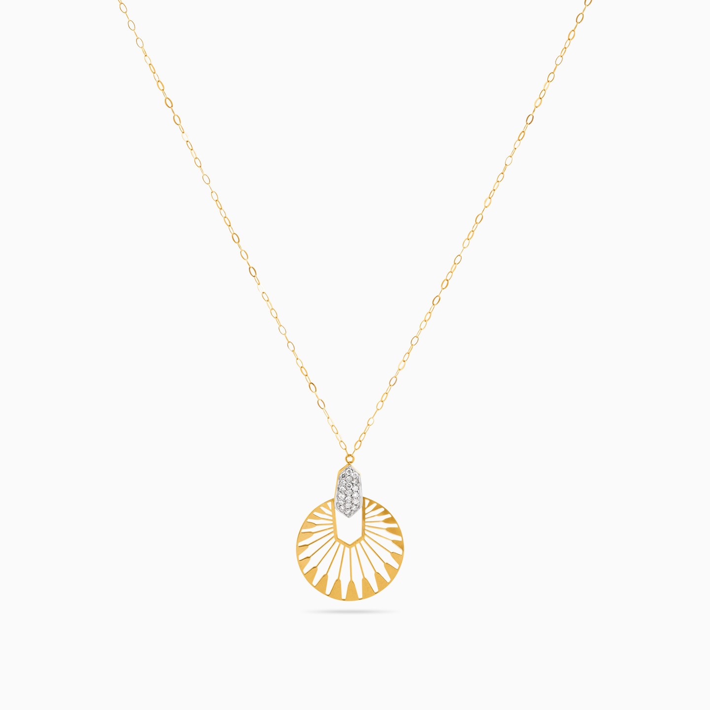 Bring all that shine to your wardrobe with this necklace from L'azurde Diamonds. The cutwork pendant in 18-karat yellow gold is accented with brilliant cut diamonds and drops boldly from a delicate chain. We think this number will effortlessly take you from day to evening.