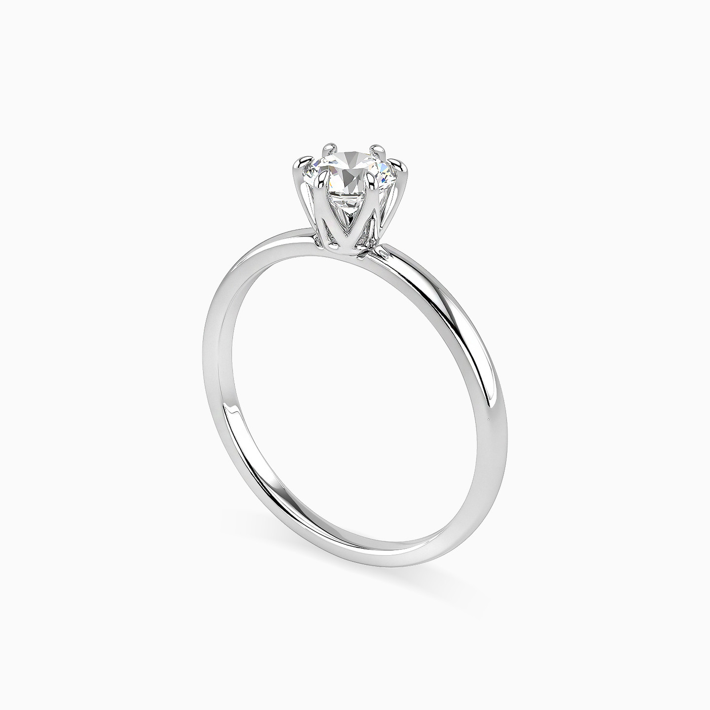 Set the standard for elegance and feminine style wearing this captivating diamond solitaire ring from L'azurde Diamonds. Beautifully crafted in highly polished 18-karat white gold, this divine diamond ring features a 0.37-carat brilliant cut diamond at the center, in an exquisite 6-prong setting. Prepare to sparkle, as this ring dazzles with every move of your hand.