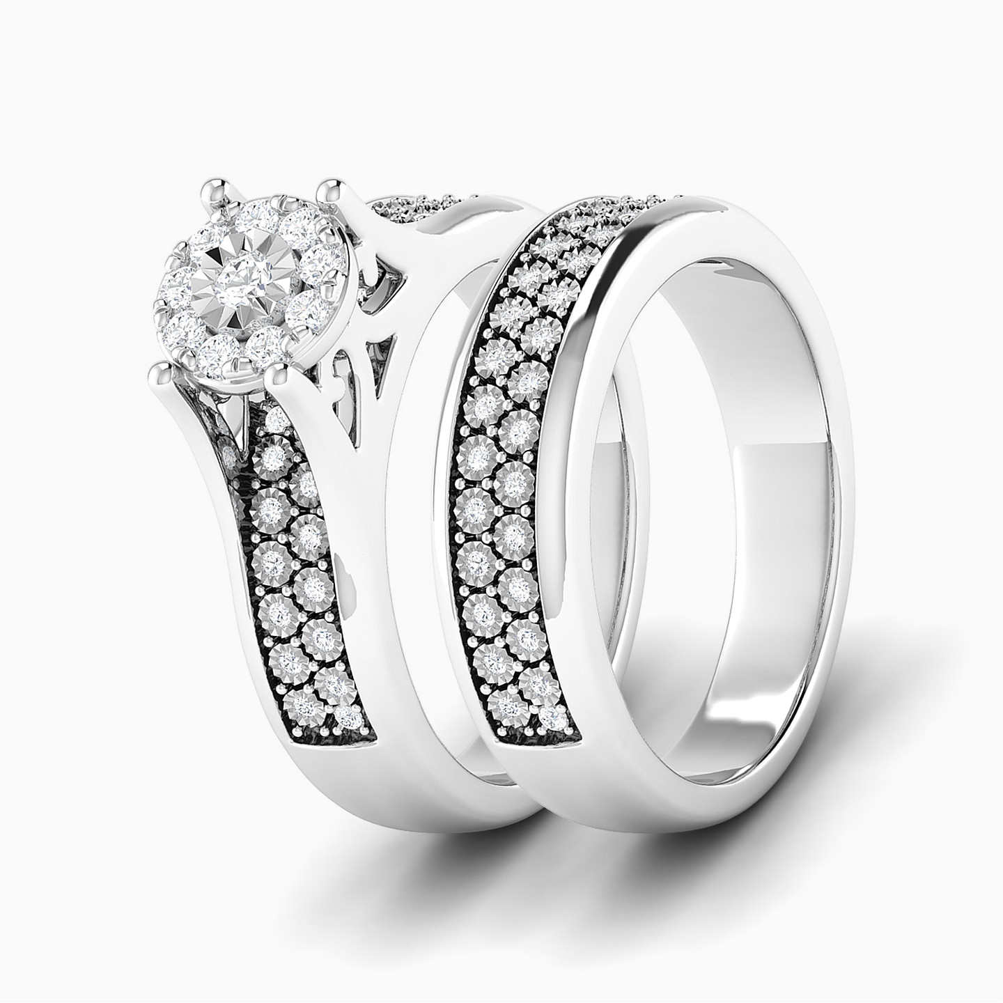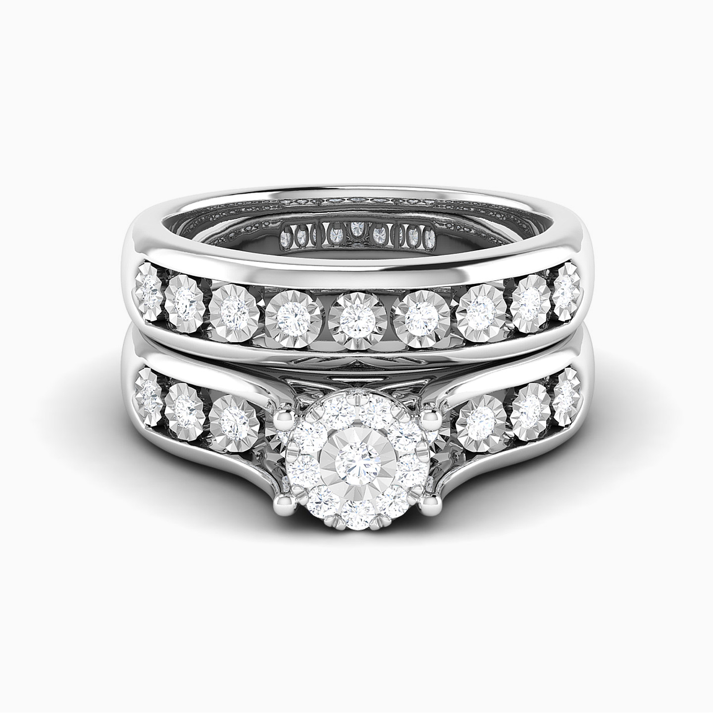 Indulge in the timeless beauty of this twin ring set from L'azurde Diamonds. Within the 18-karat white gold twin rings, each features bands adorned with radiant diamonds, and one of them boasts a captivating center standout diamond. These rings capture the essence of elegance and enduring allure, so whether you're wearing jeans and a tee or an elegant evening gown, they will add a touch of sparkle to your day.