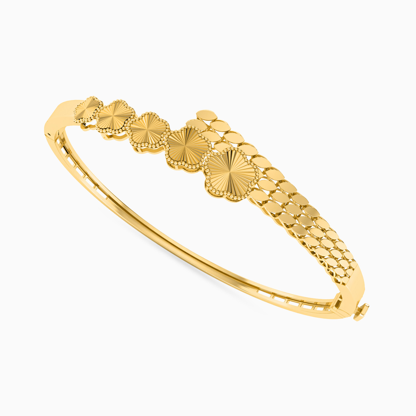 Bringing the magic of flowers and leaves to your wrist, this bangle and ring set from L'azurde Gold is a nod to chic style. The 21-karat yellow gold band is dotted with a cluster of petite leaves and topped with shiny flowers and bead accents. Slip this on with your favorite evening outfit or party ensemble. We recommend wearing it over black hues for maximum effect.