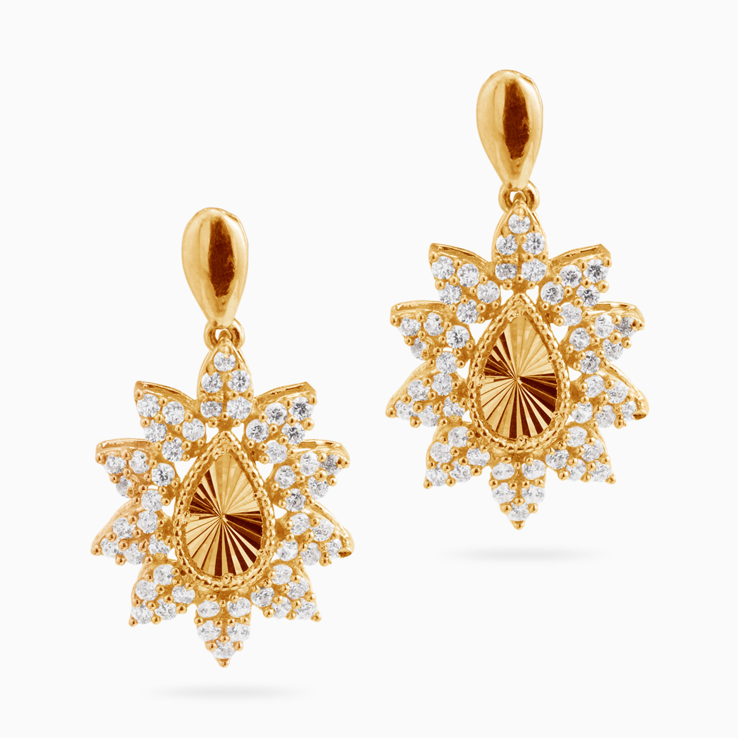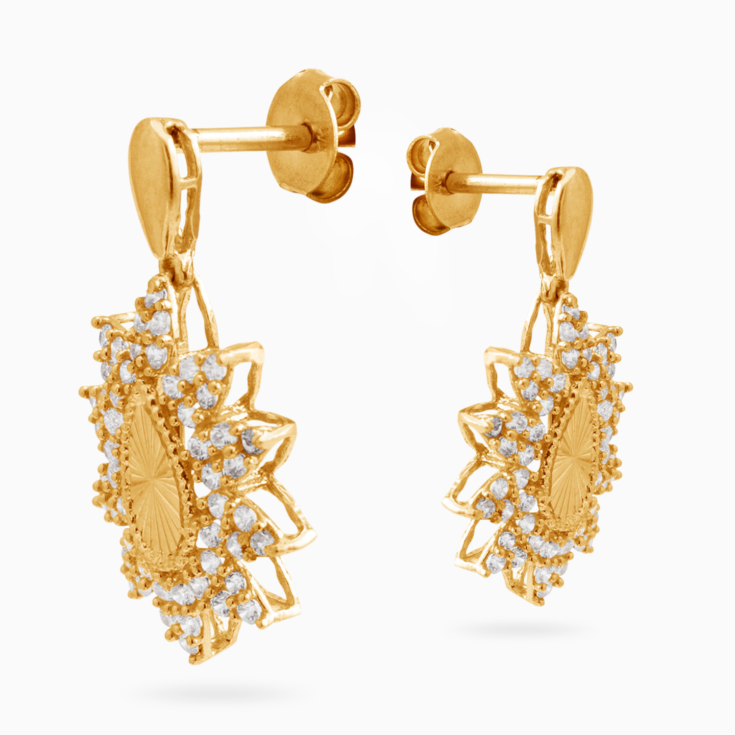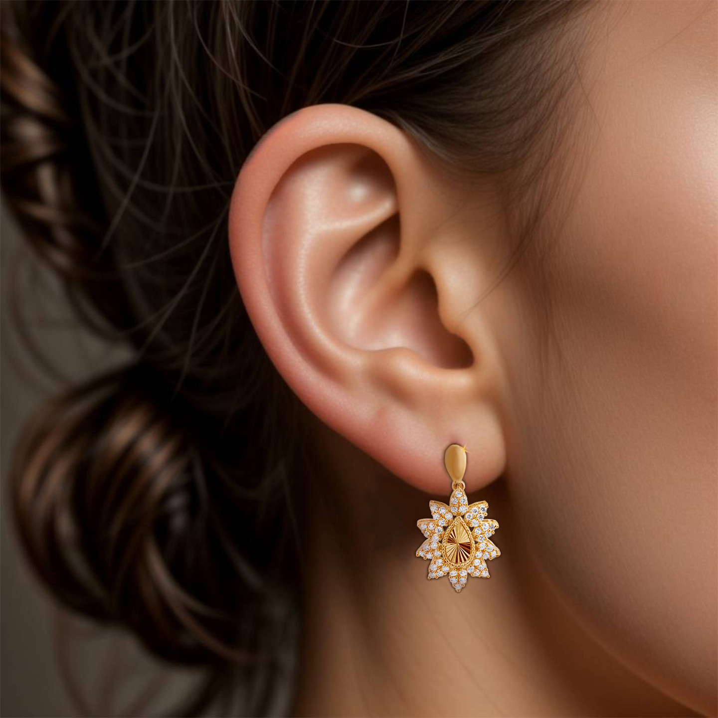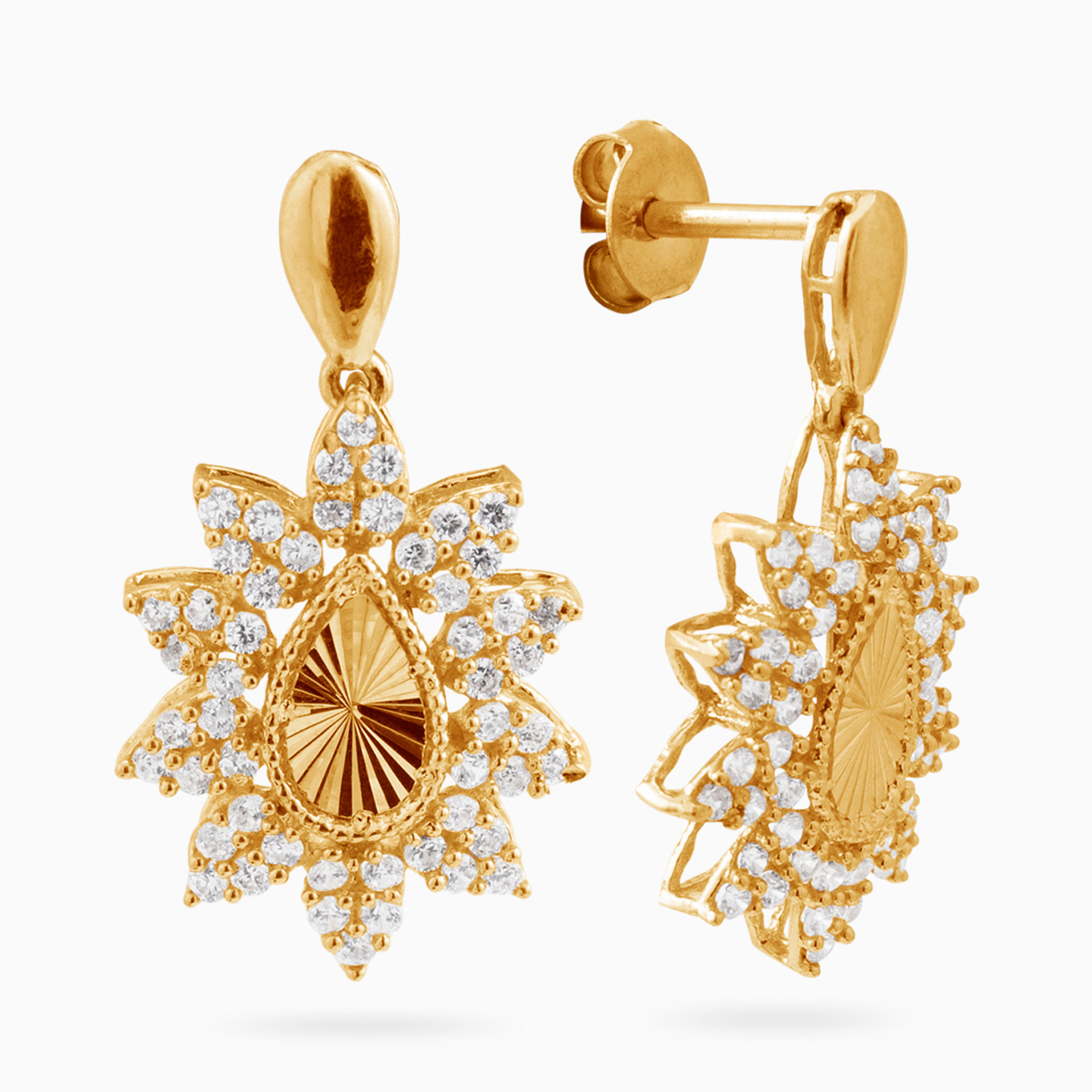 أقراط متدلية ذهب زهرة عيار 18 قيراط مزينة بأحجار الزركون