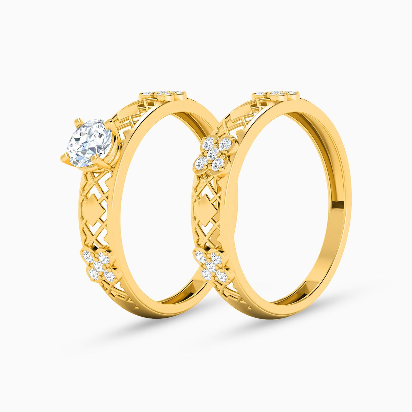 Classiness comes in all shapes and this twins set from L'azurde Gold is our current favorite. We love this pair of rings for their simple cutwork detail on the band and light stone accents. The single stone detail on top adds tons of glam to this set which makes a fitting choice for weddings and engagements.