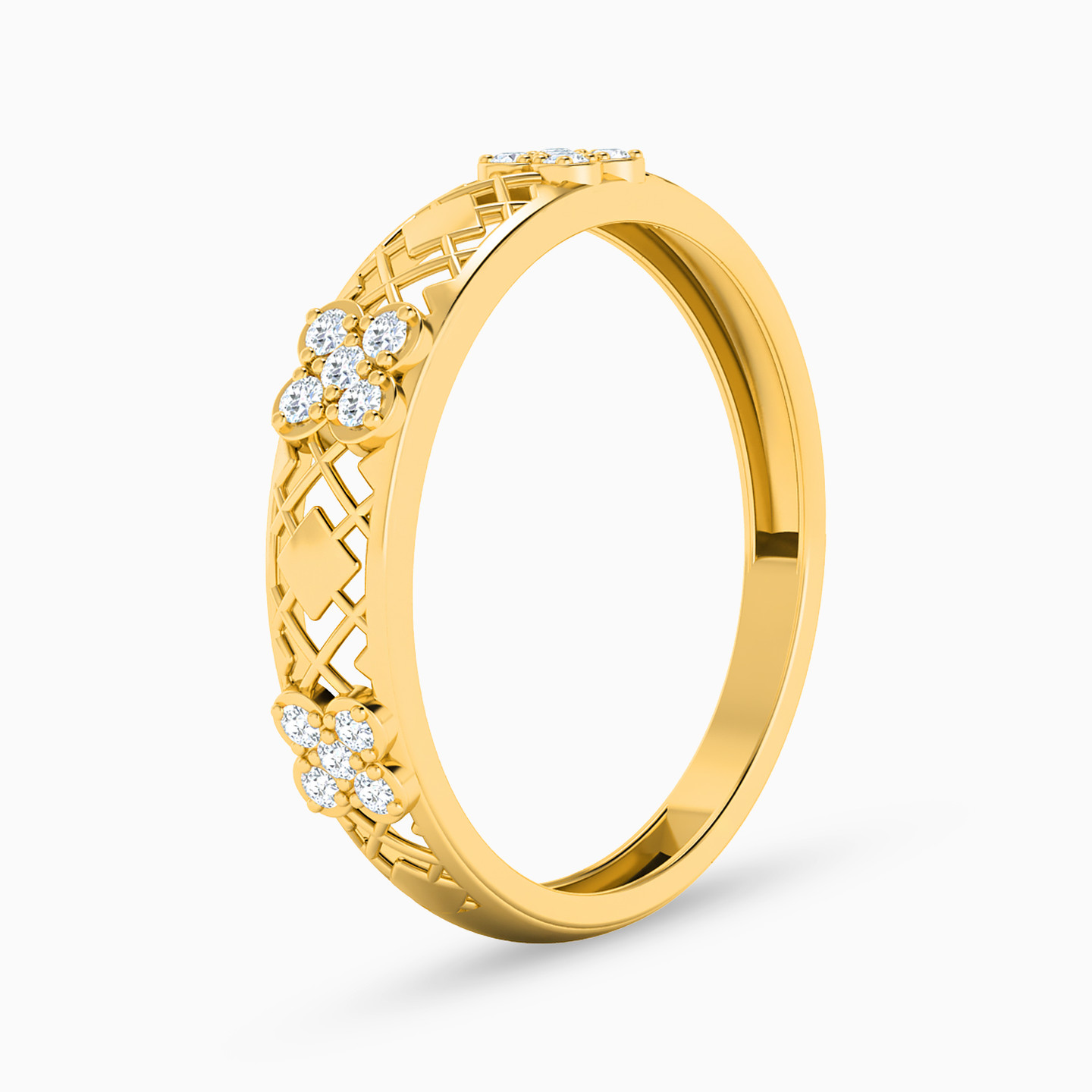خاتم توينز ذهب زهرة عيار 21 قيراط مزين بأحجار الزركون