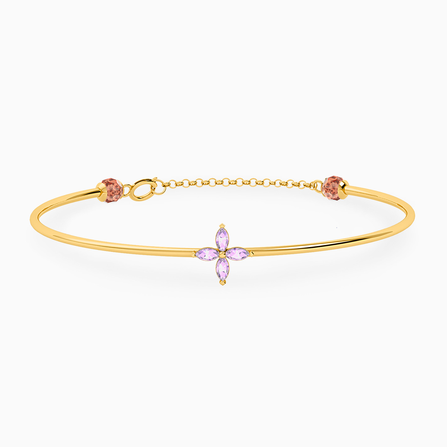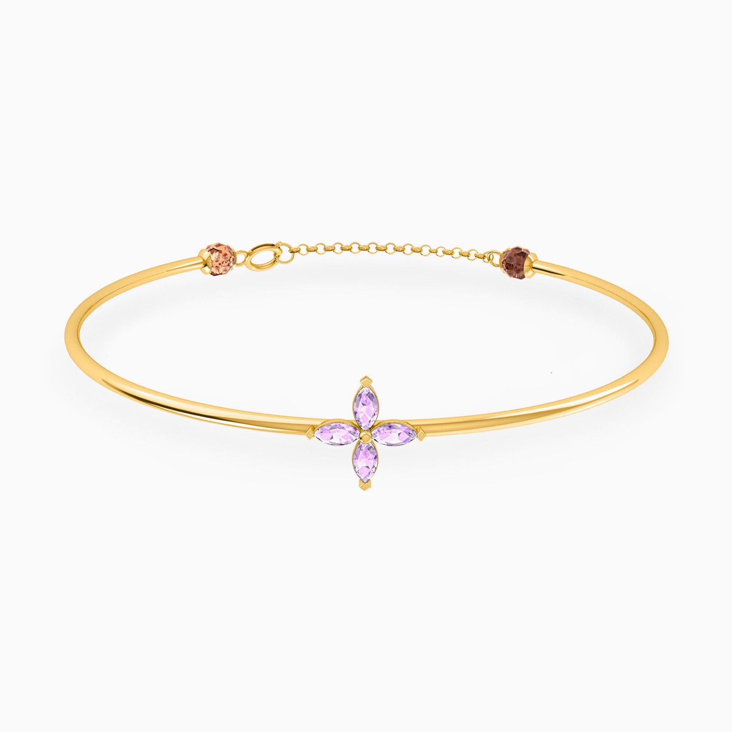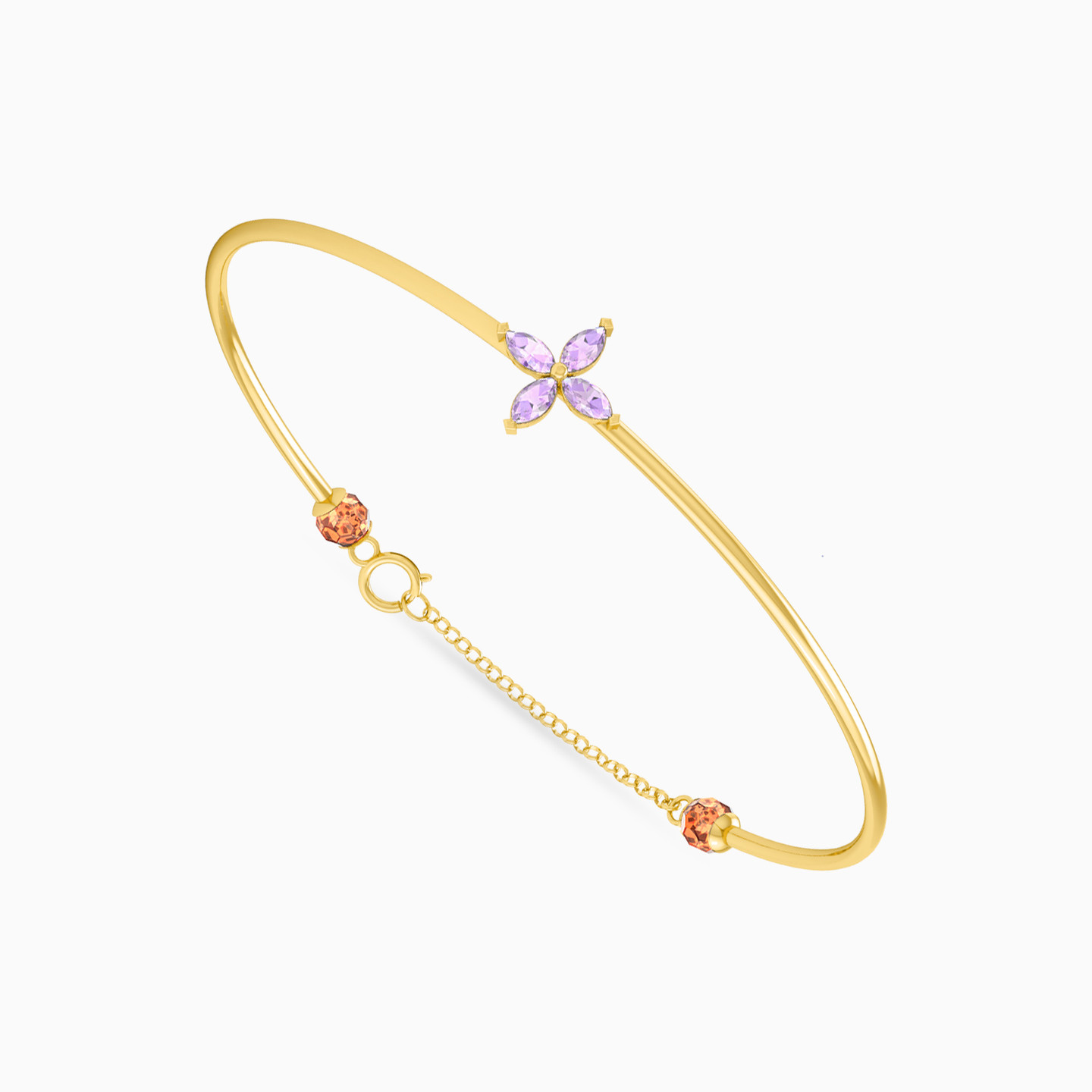 أسورة عريضة ذهب زهرة عيار 18 قيراط مزينة بحجر بنفسجي