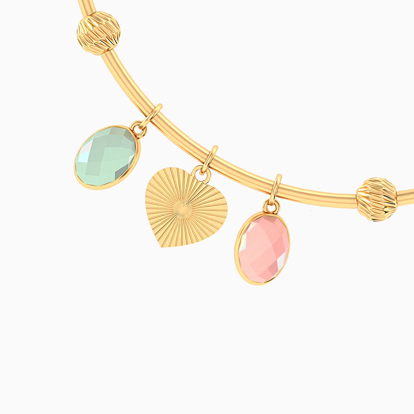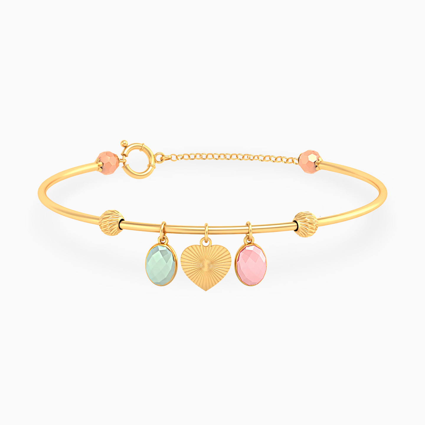 Give your smart casual outfits a stylish boost with this bracelet from L'azurde Instyle. Featuring colorful stone charms along with a textured heart dangler, this bangle styled bracelet will lend a playful look to your everyday wardrobe. Wear it solo for maximum effect.