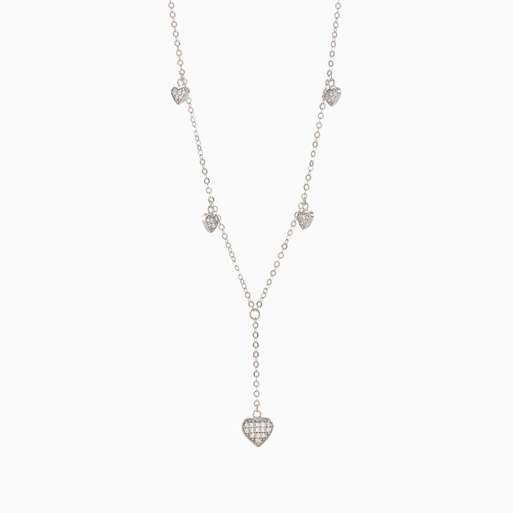 You will love the sparkle this piece lends to your evening look. This elegant drop necklace from L'azurde Gold is cast in 18-karat white gold and features heart charms studded with stones. Its drop style will beautifully accentuate a plunge neckline.