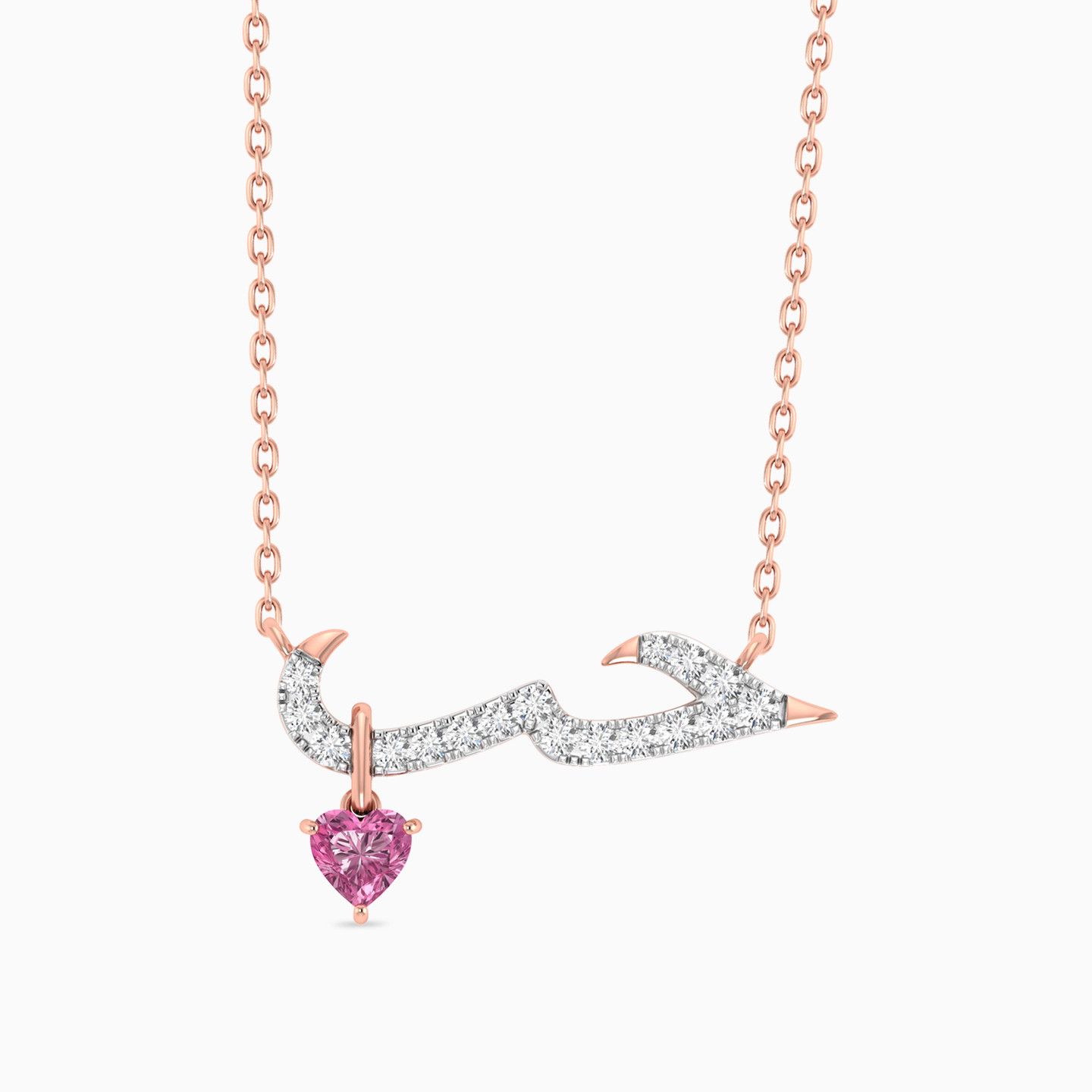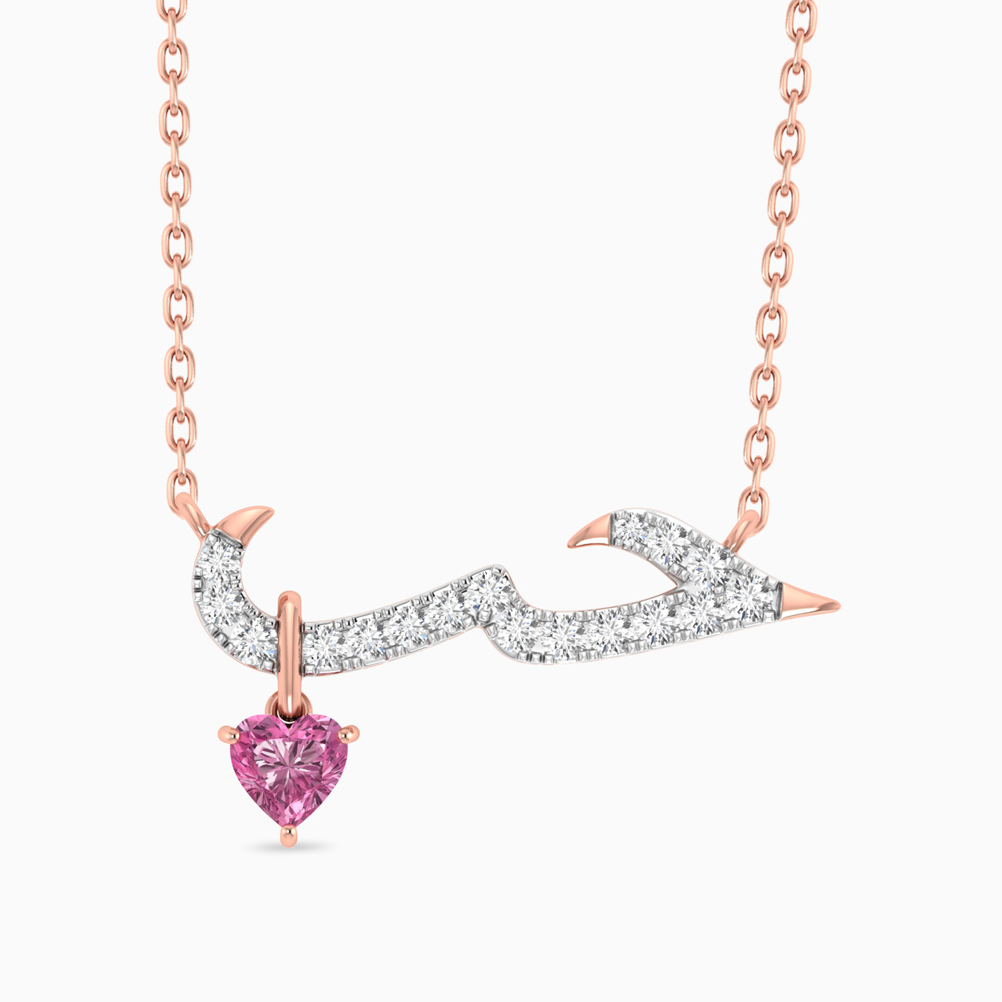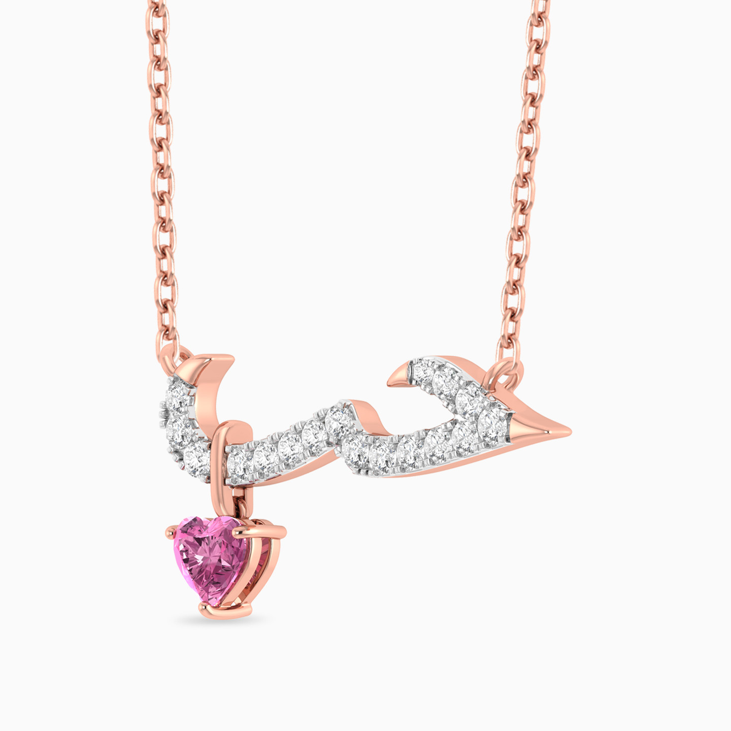 Ignite the flames of passion with this 18-karat rose gold pendant necklace from L'azurde Diamonds. Adorned with the word "Love" the pendant is a radiant declaration of affection, embellished with the most brilliant-cut diamonds that sparkle like the stars on a moonlit night. The final touch—a mesmerizing heart-shaped pink-colored stone dangle, makes this necklace an exquisite embodiment of love. A perfect pick to celebrate your love this Valentine’s Day!