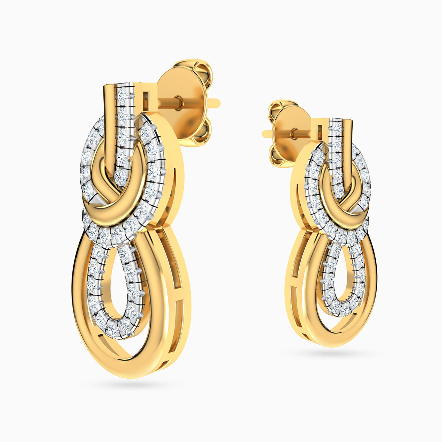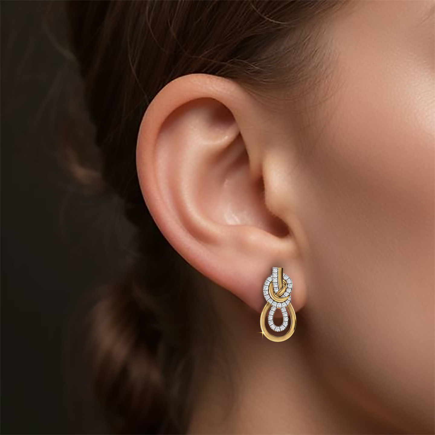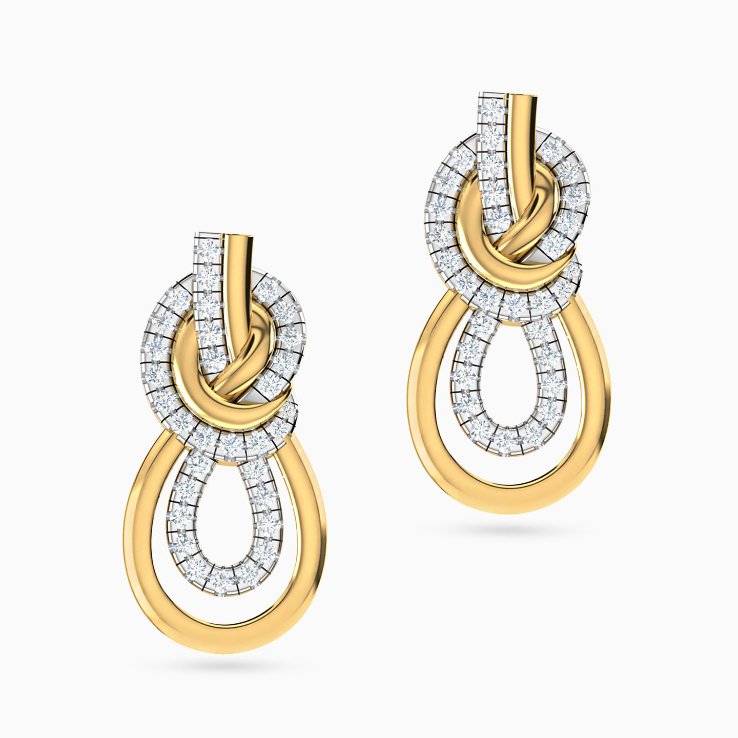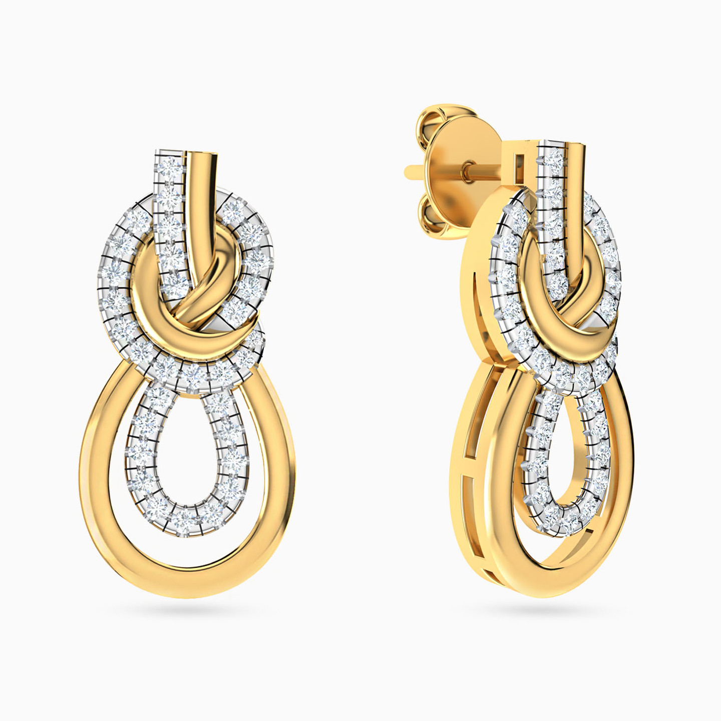 أقراط متدلية ذهب عقدة عيار 18 قيراط مزينة بالألماس