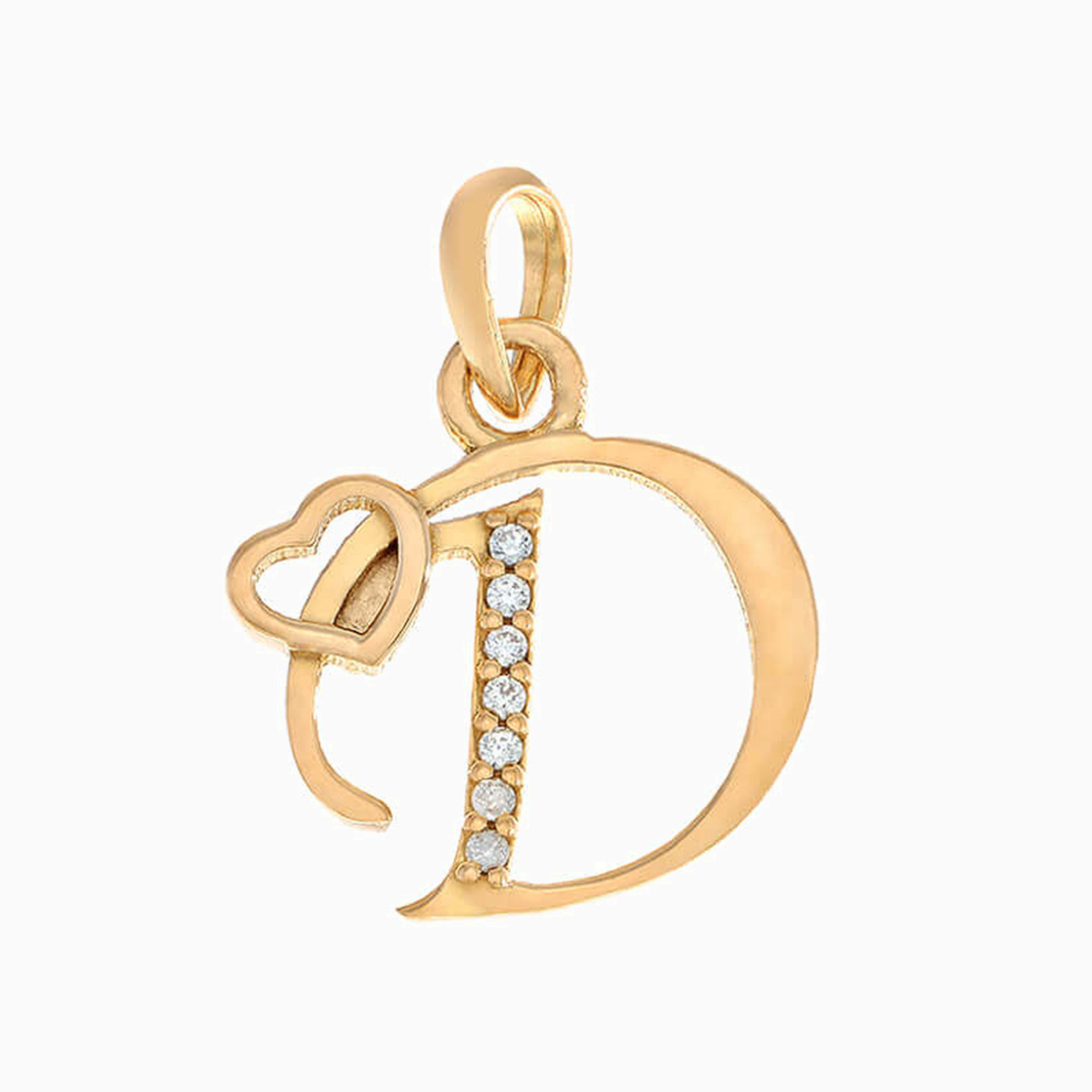 Give your initial all the attention it deserves with this D letter pendant from L'azurde Gold. Cast in 21-karat yellow gold, it is dotted with tiny zirconia stones and accented with a petite heart motif. We recommend gifting this along with a plain yellow gold necklace.