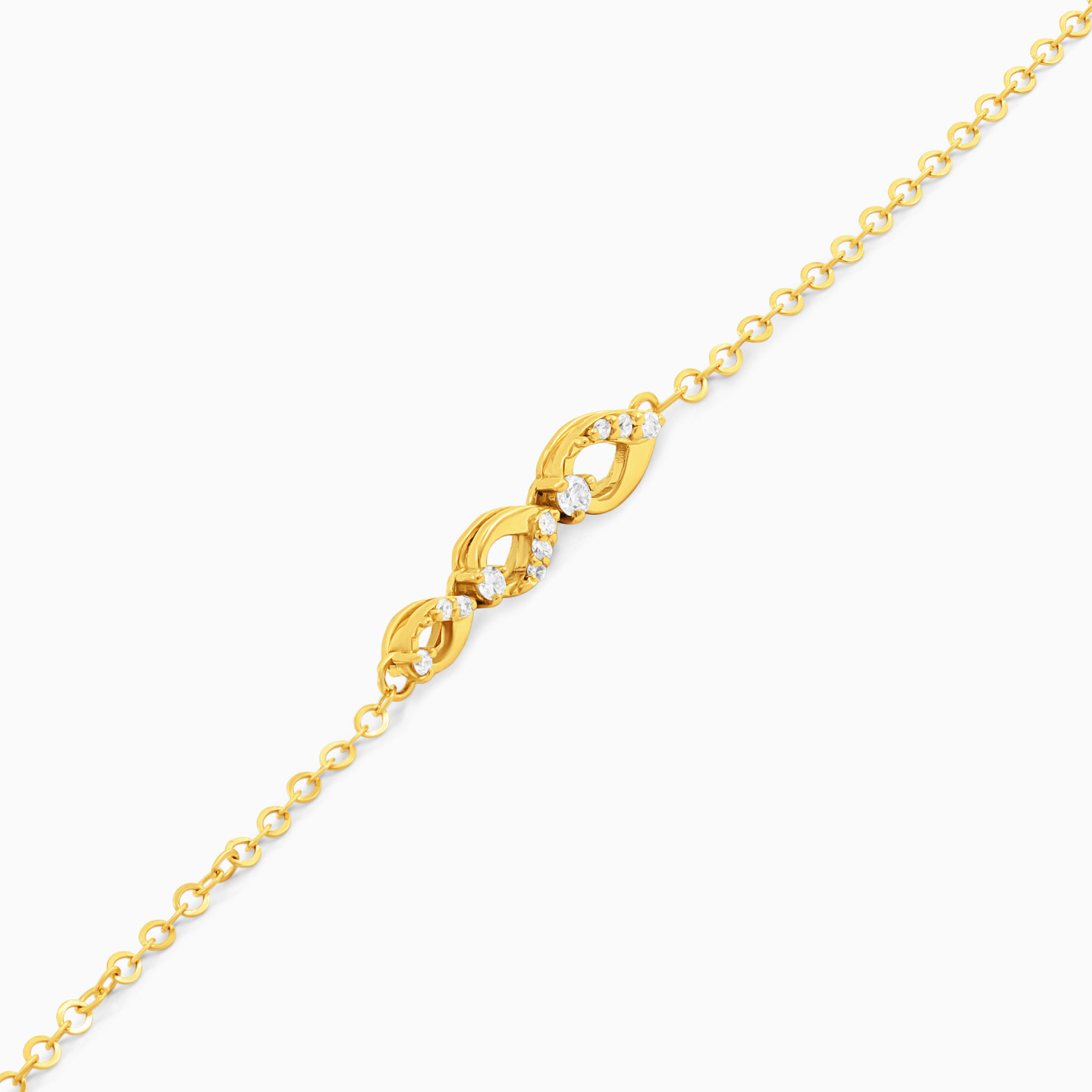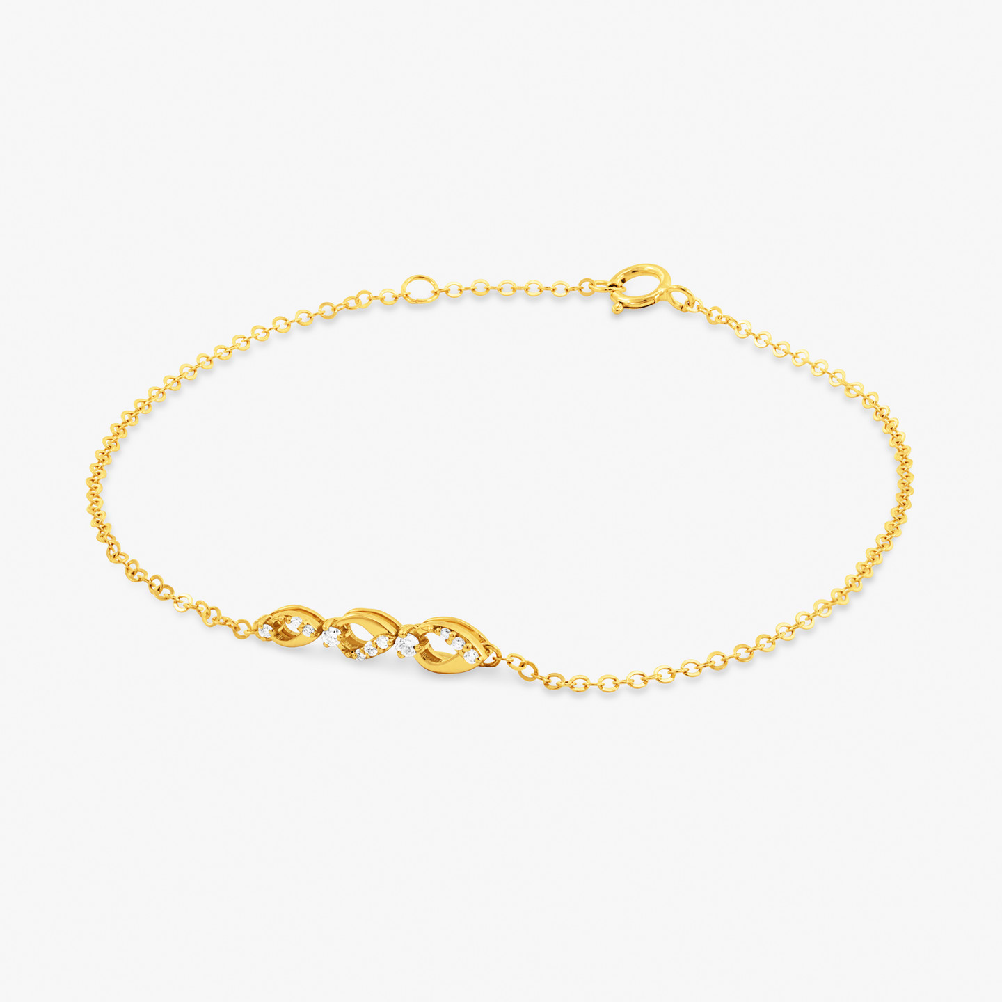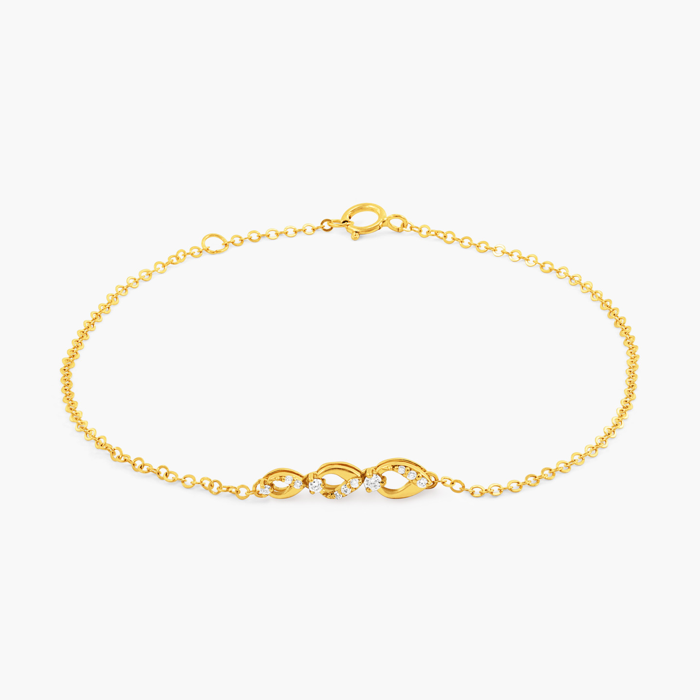 Step out wearing this exquisite statement of style and sophistication from L’azurde Diamonds. This luxurious gold diamond chain bracelet boasts 0.06-carat brilliant cut diamonds flowing across a lustrous 18-karat yellow gold design. This is the quintessential bracelet for day or night dazzle.