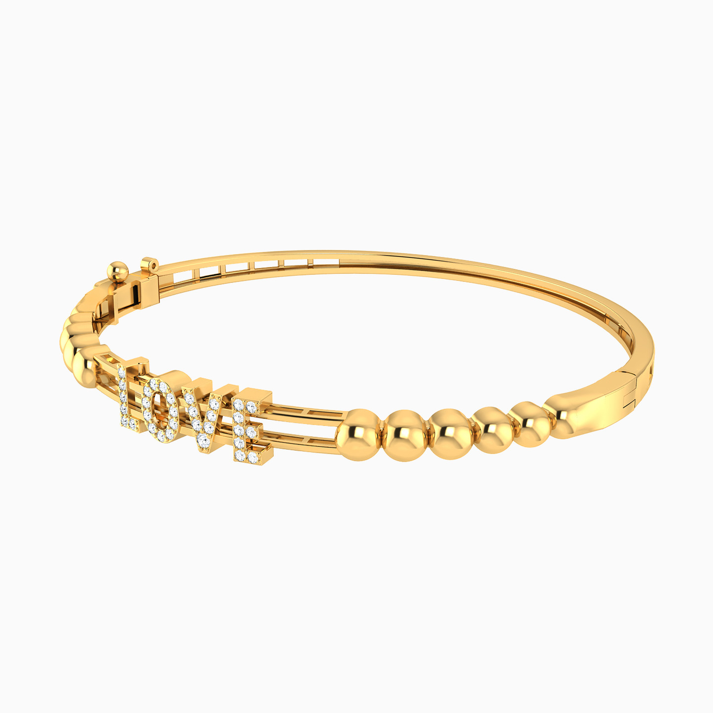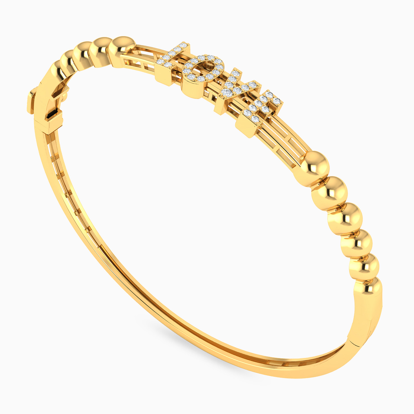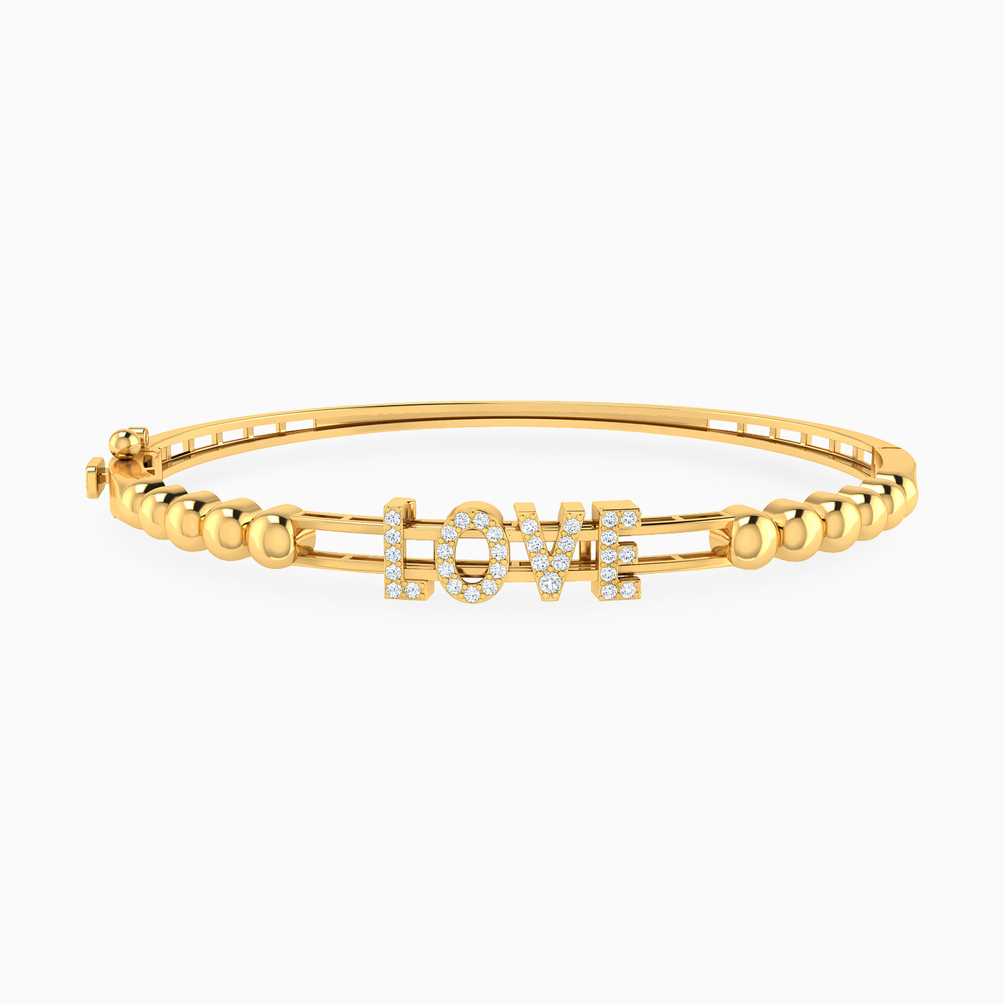 Spread some love with this 18-karat yellow gold bangle bracelet from L'azurde Gold - a glamorous declaration on your wrist! At its heart, the word "LOVE" sparkles brilliantly, crafted from dazzling cubic zirconia on a golden frame, sending a message of affection and style. Flanked by beautiful round beads on either side, this bracelet is not just an accessory; it's a statement that'll light up any room and bring a smile to your face!