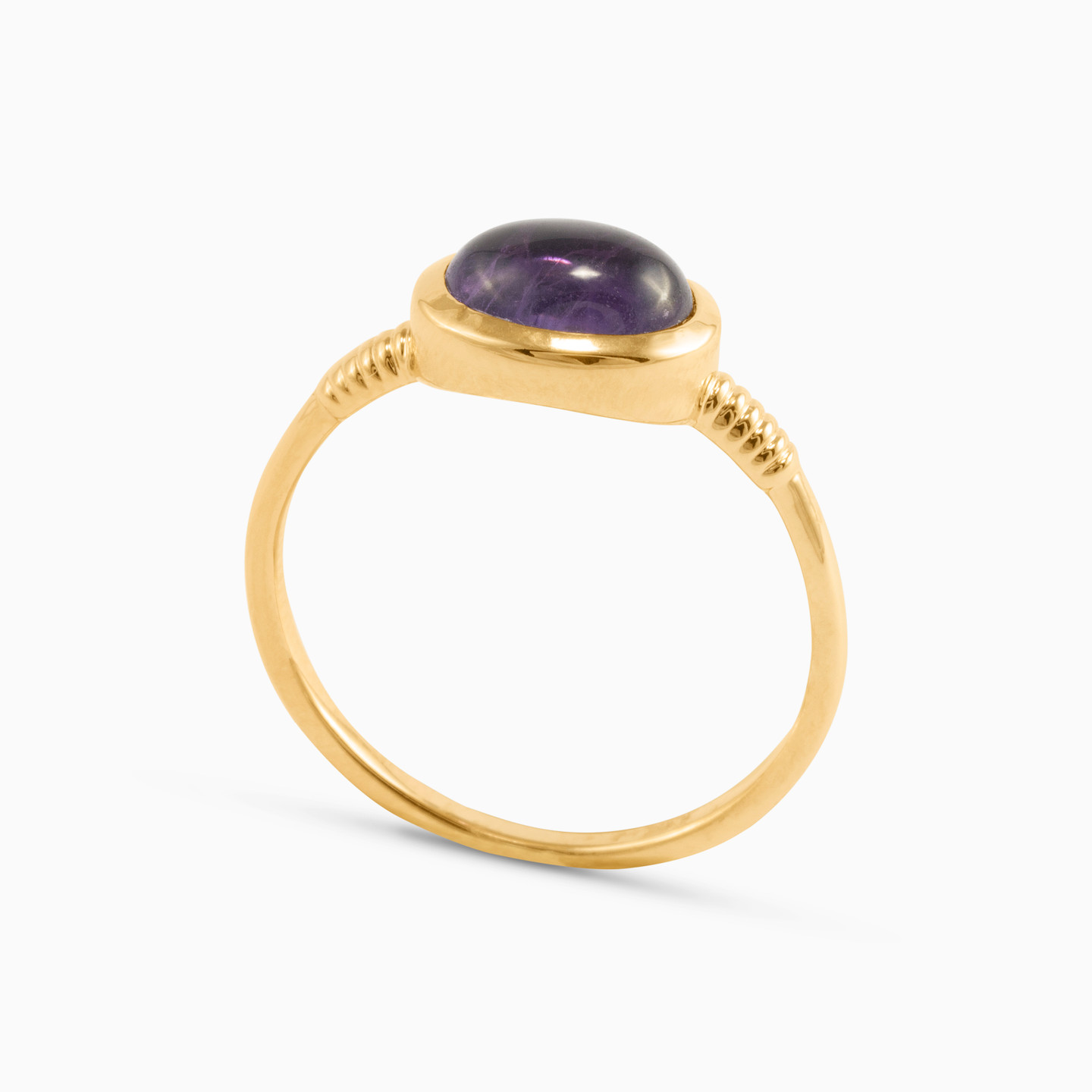 خاتم مطلي بالذهب بيضاوي مزين بحجر بنفسجي
