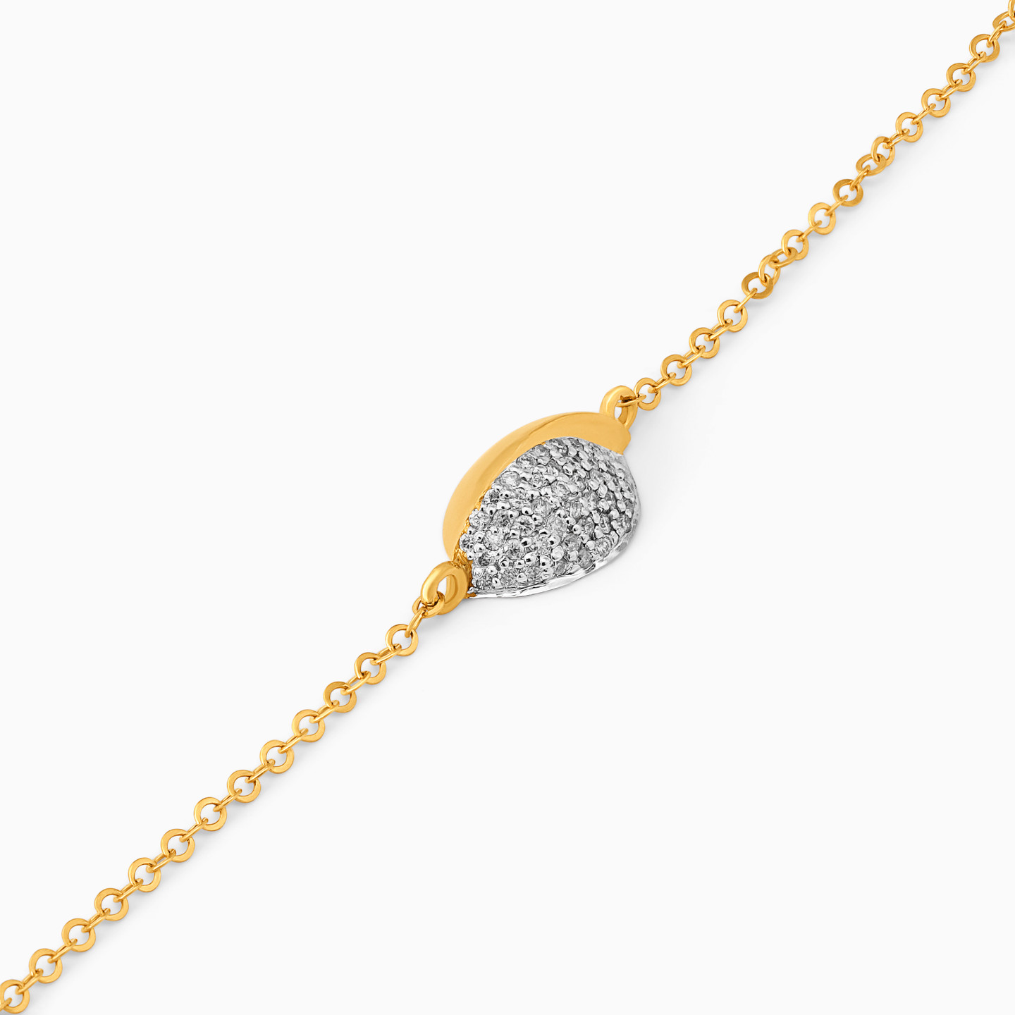 Enhance your everyday look by wearing this elegant diamond chain bracelet from L'azurde Diamonds. Crafted in gleaming 18-karat yellow gold, this enchanting design features a sleek split oval motif at the center, sparkling with brilliant cut diamonds on one half. We suggest pairing this piece with a matching diamond pendant for a glamorous look that turns heads.