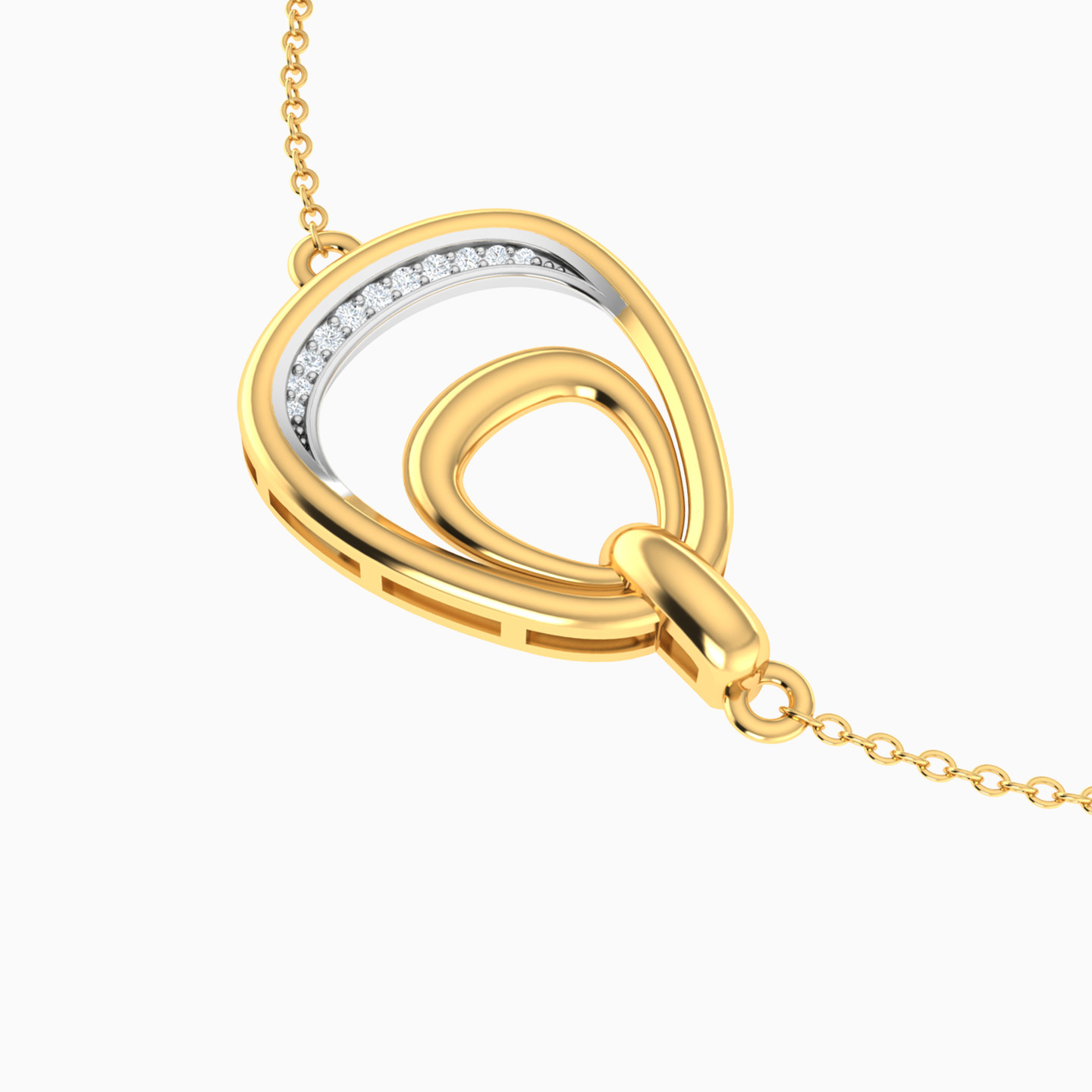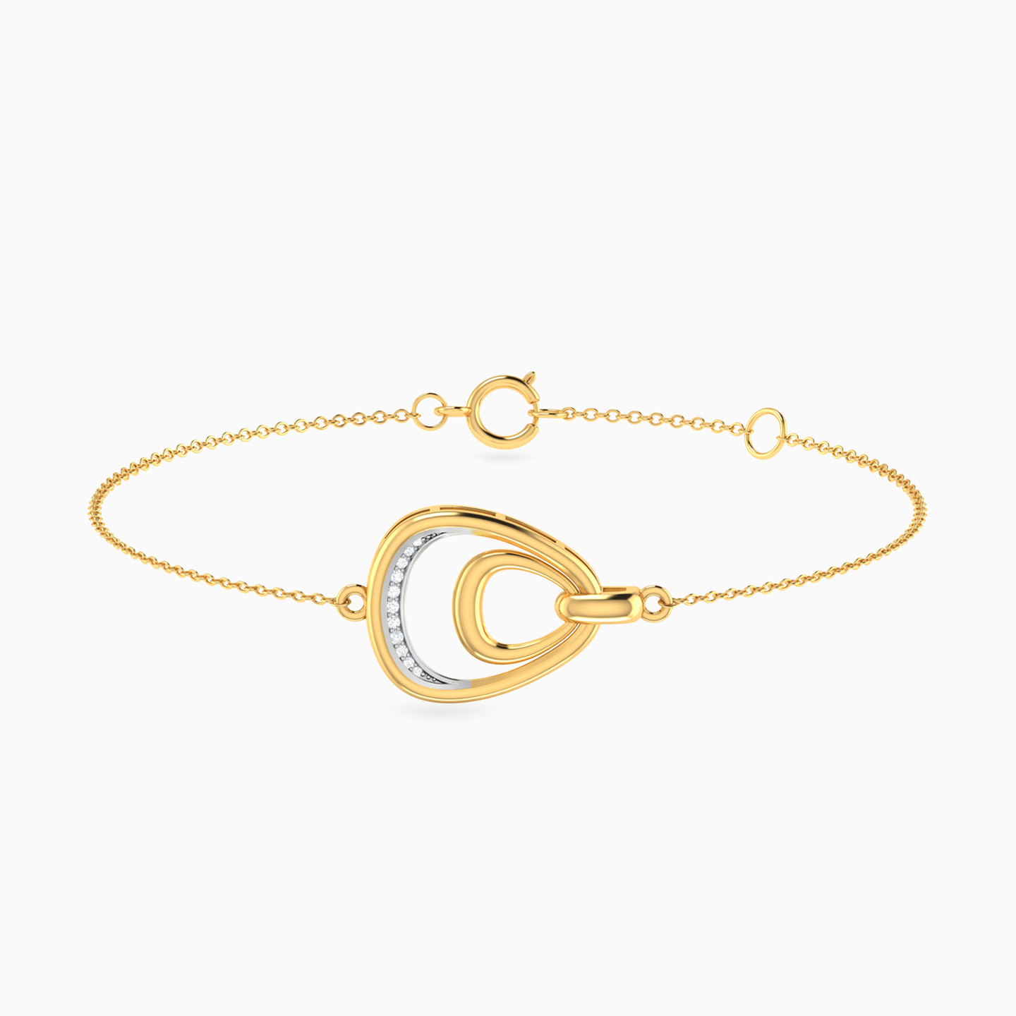 Get ready to sprinkle some magic on your wrist with this 18-karat yellow gold chain bracelet from L'azurde Diamonds! This dainty delight features a delicate chain leading to a captivating centerpiece, where a pear-shaped frame sparkles with brilliant cut diamonds, creating a dazzling disco on the lower side. As if that's not enough, a smaller pear-shaped frame tucked within adds a cheeky twist, making this bracelet a whimsical party on your wrist!