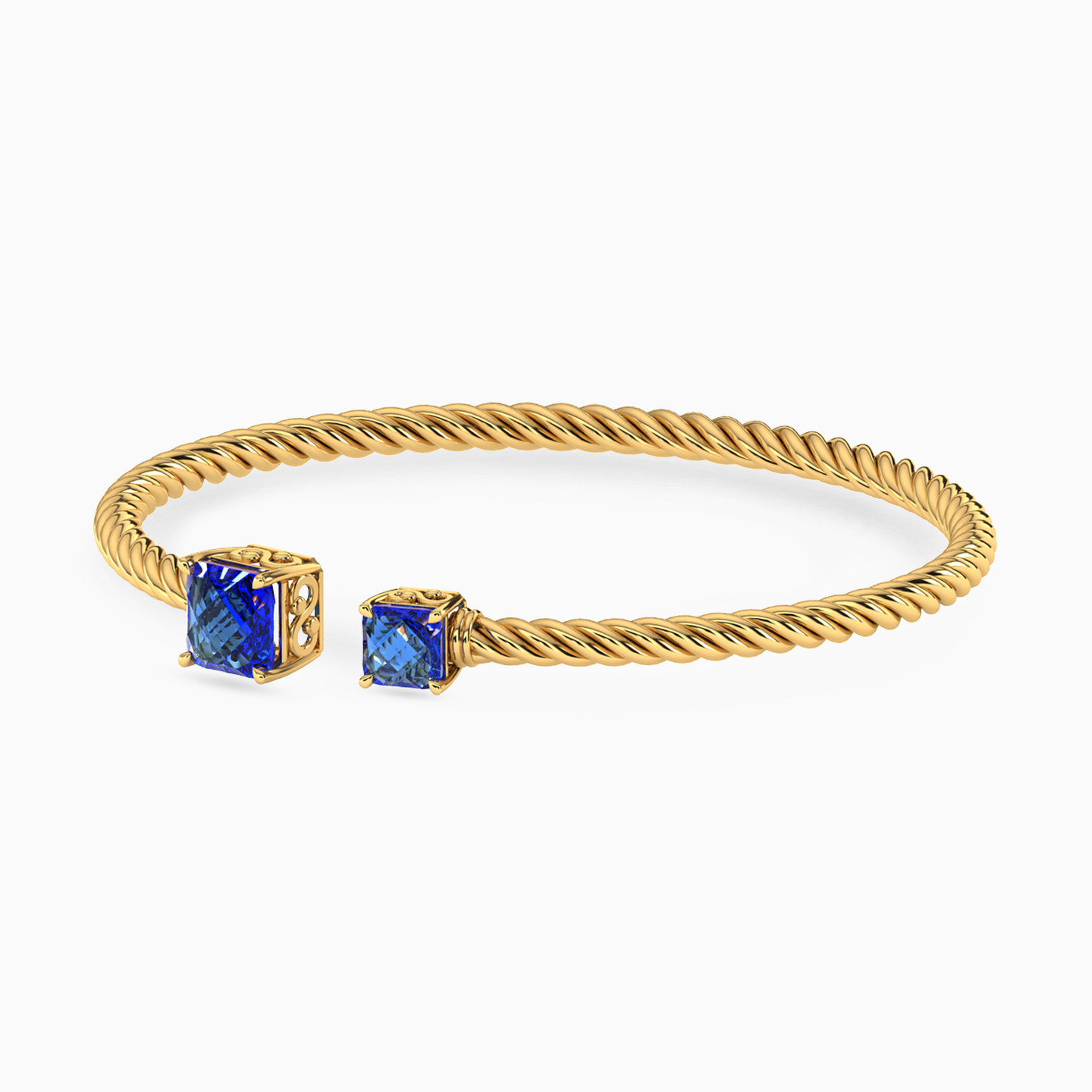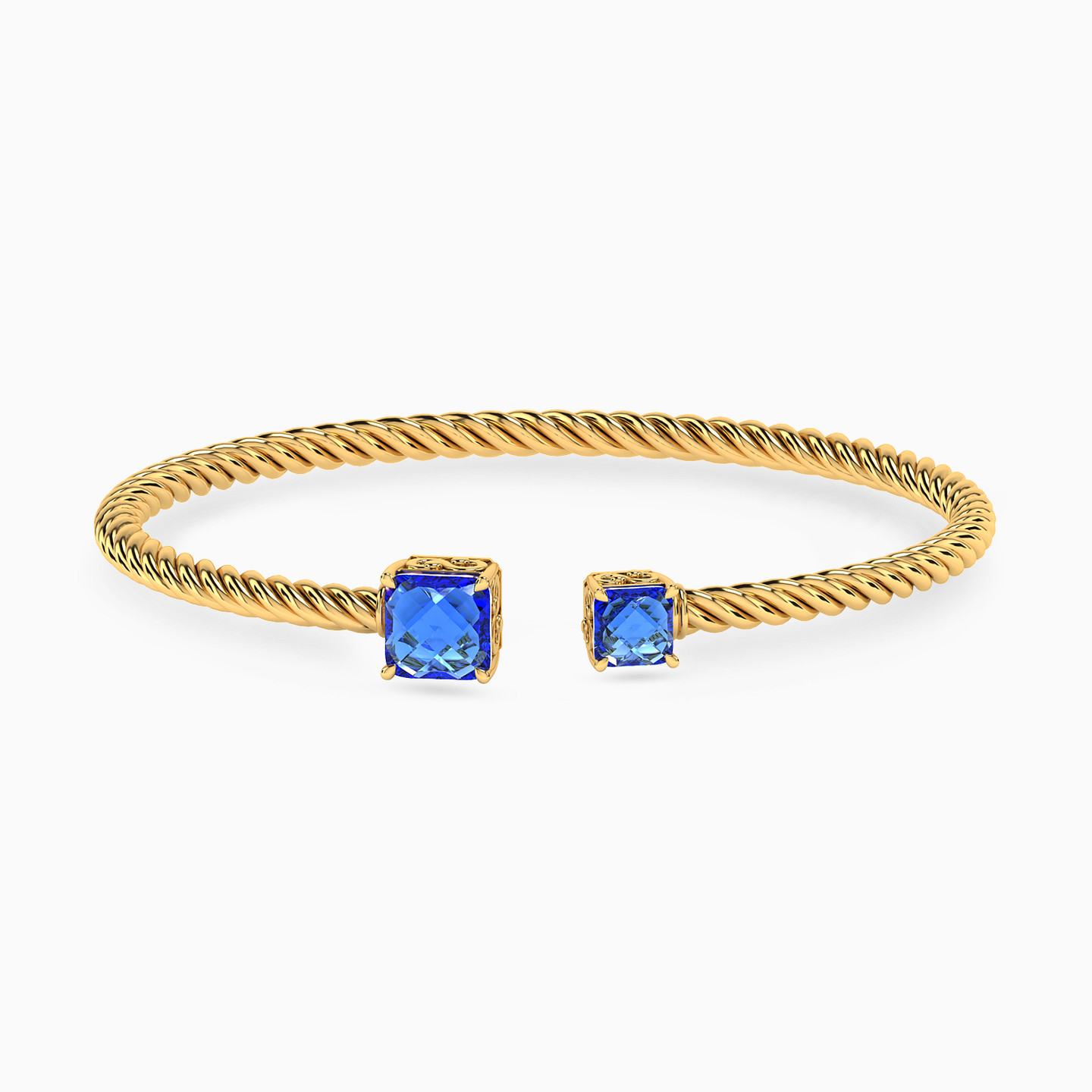 أسورة عريضة ذهب مربعة عيار 18 قيراط مزينة بحجر أزرق