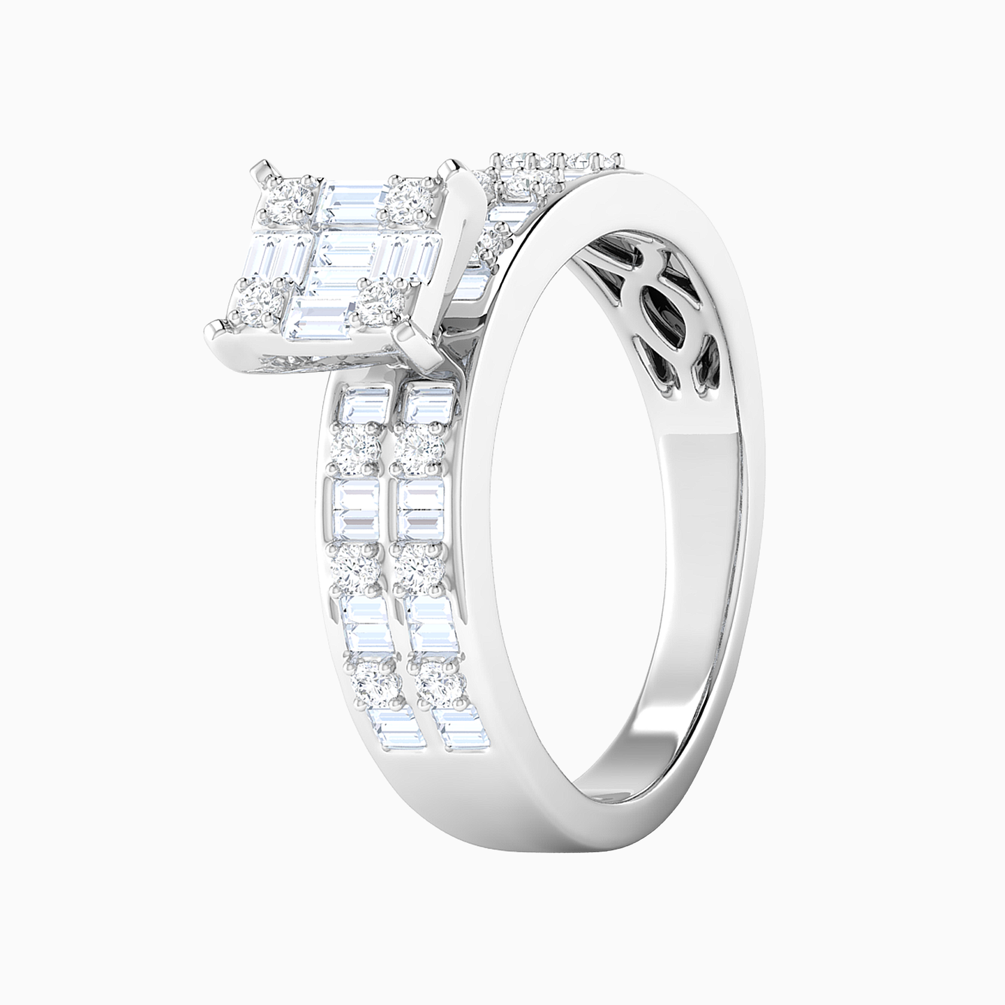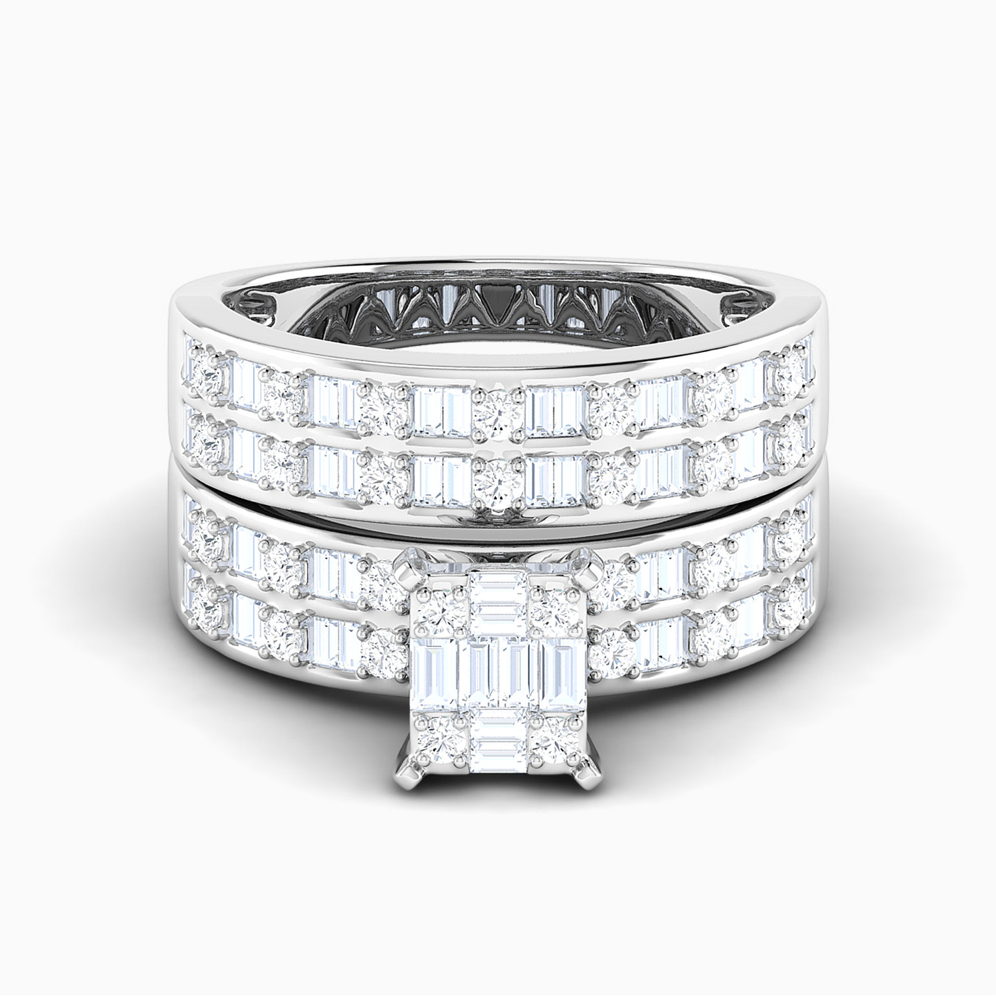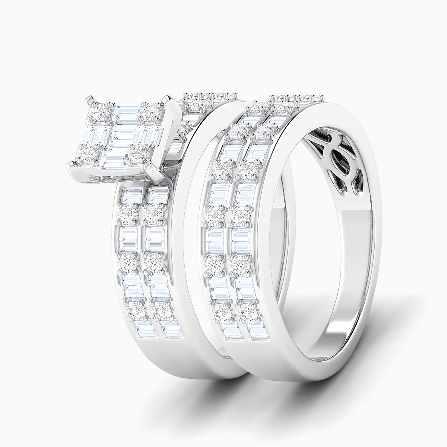 Adorn your hands with this stunning twin ring set from L'azurde Diamonds. In this 18-karat white gold twin set, both rings feature bands lavishly studded with shimmering diamonds, and one of them glistens with a captivating center standout diamond. These rings symbolize sophistication and make a thoughtful gift for a loved one, a token of your shared moments and their enduring beauty.
