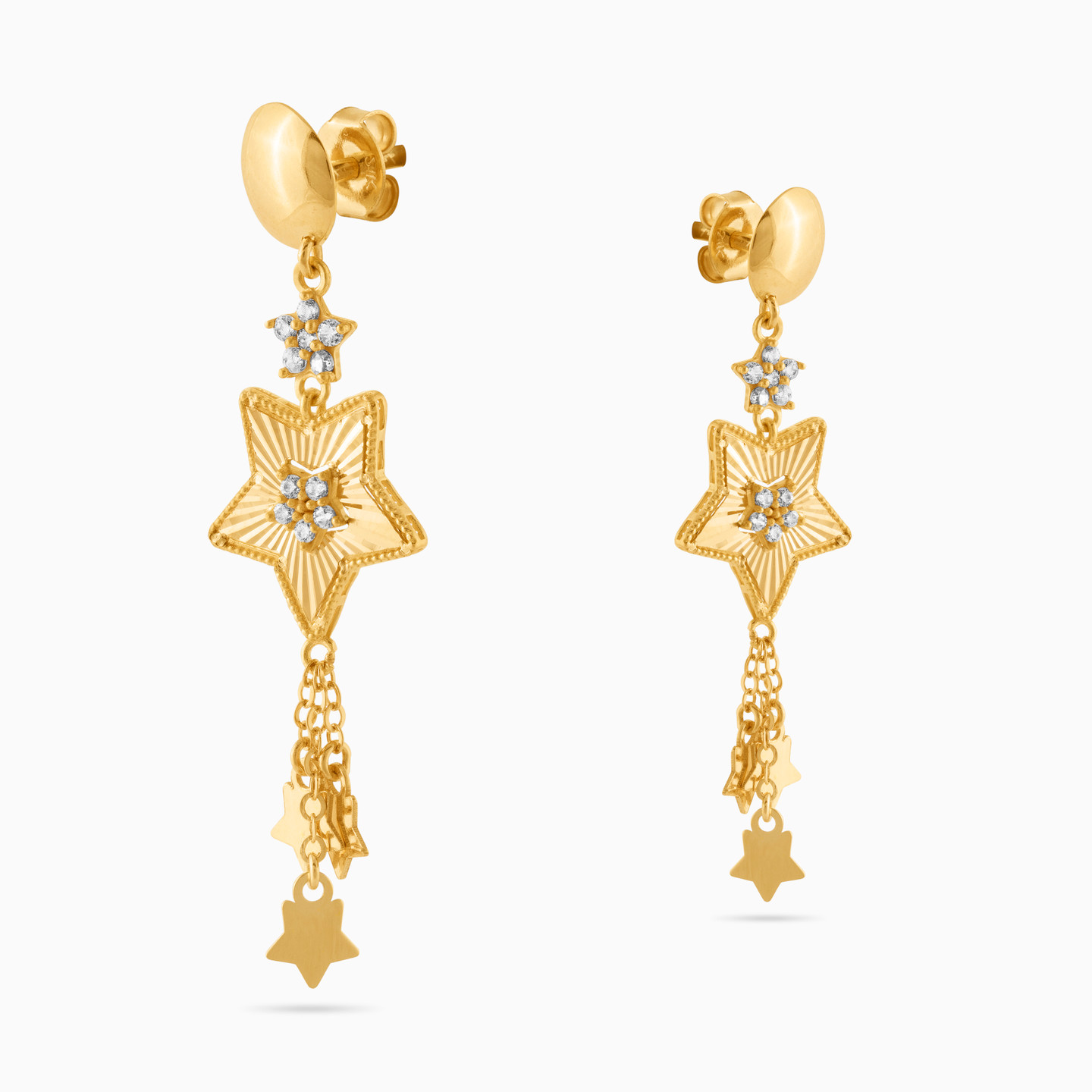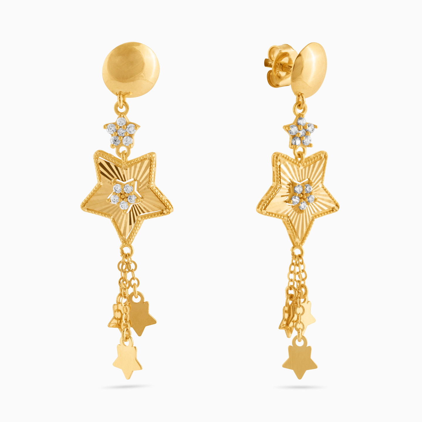 أقراط متدلية ذهب نجمة عيار 18 قيراط مزينة بأحجار الزركون