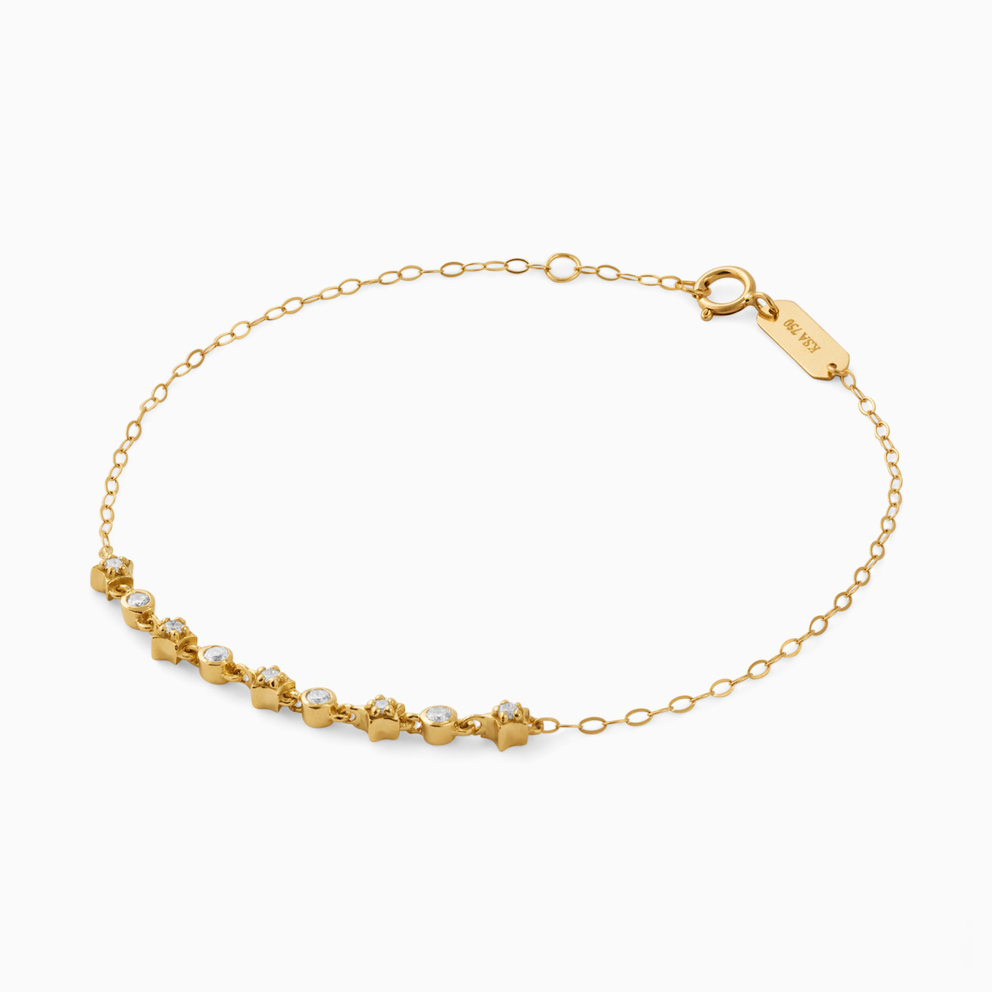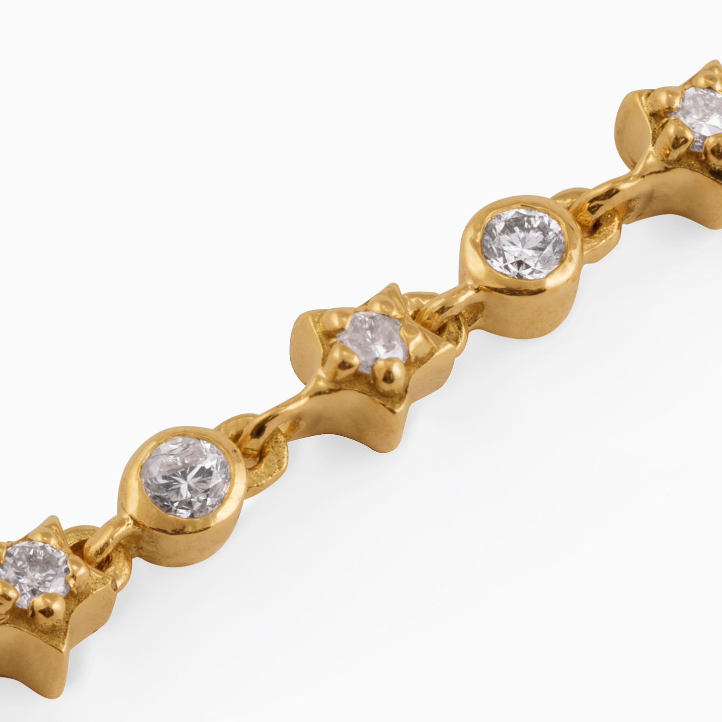 Add a twinkle to your wrist with this bracelet from L'azurde Diamonds. We love it for the individual brilliant cut diamonds set within star and circle motifs that neatly line up on the 18-karat yellow gold chain. This piece will make a wonderful addition to your work to weekend style.