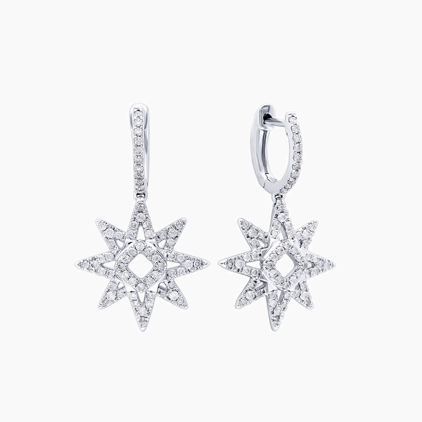 Captivate the crowds with these scintillating pieces decked with 0.493-carats of diamonds in a star and lozenge shape and suspended from a latch back fastening. Set in 18-karat white gold, this pair will seamlessly work its way through your day to evening wardrobe.