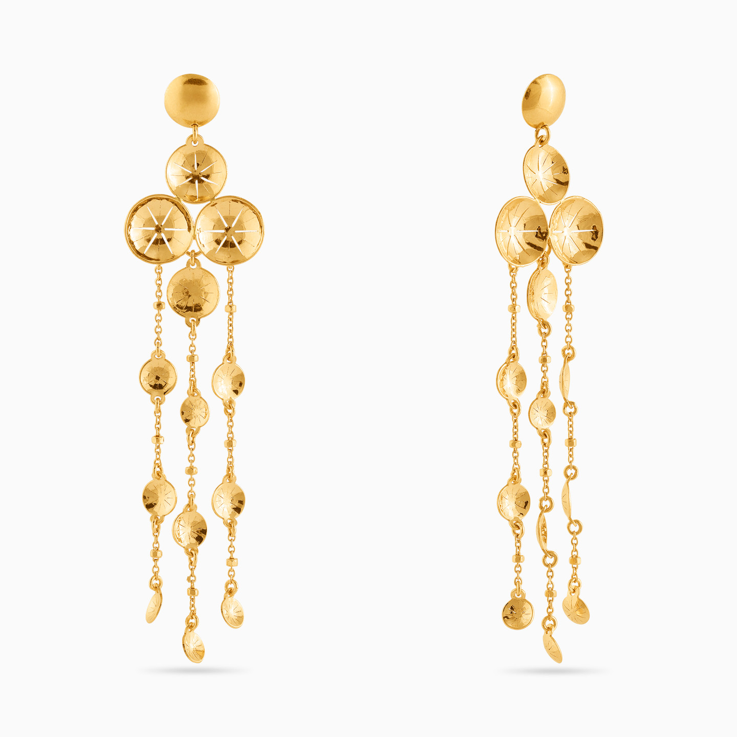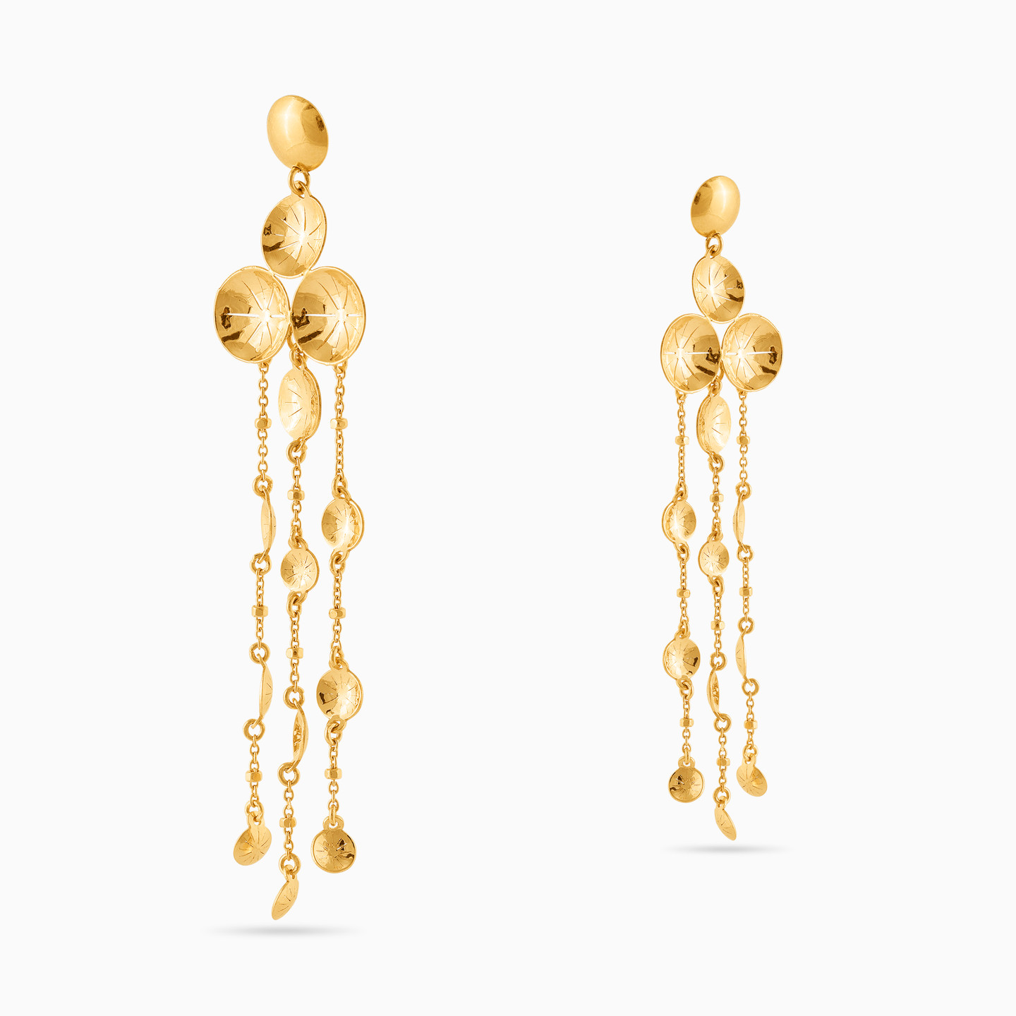 For days when subtle just won’t do we present to you these stunning drop earrings from L'azurde Gold. These chandelier-style earrings feature dainty chain dangles, rounded and sparkling gold beads, and intricate details, all of this in lustrous 18-karat yellow gold. Grab these on occasions when you need to channel your inner diva!