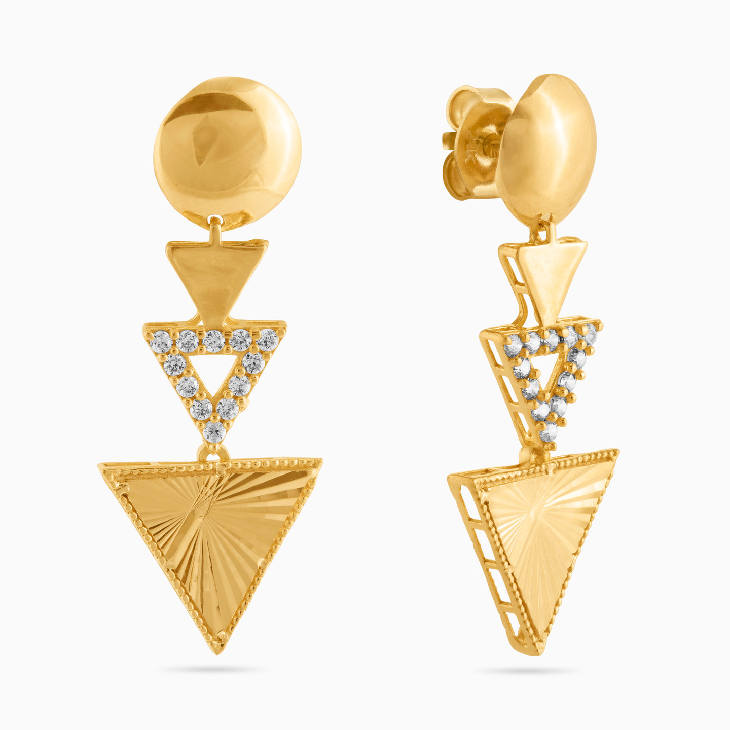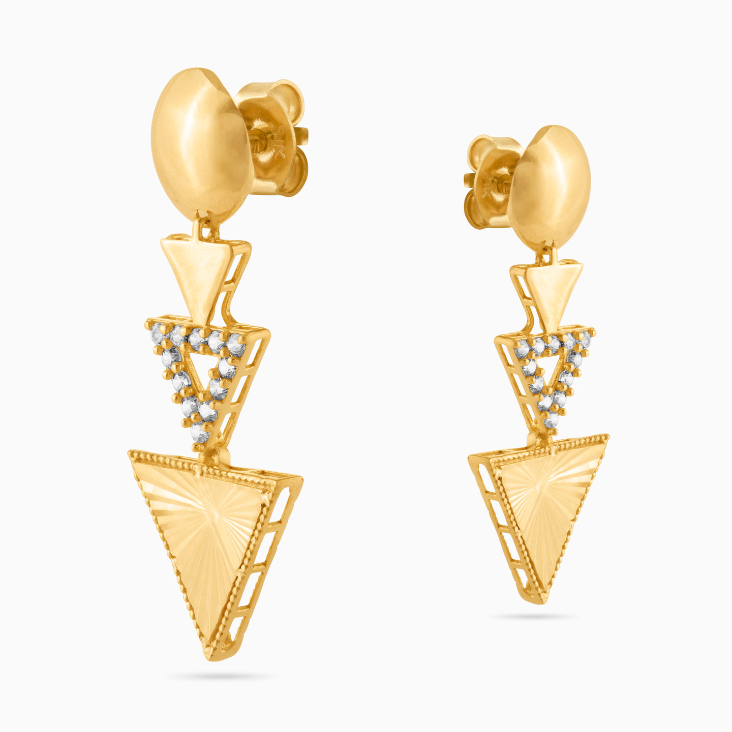 أقراط متدلية ذهب مثلث عيار 18 قيراط مزينة بأحجار الزركون