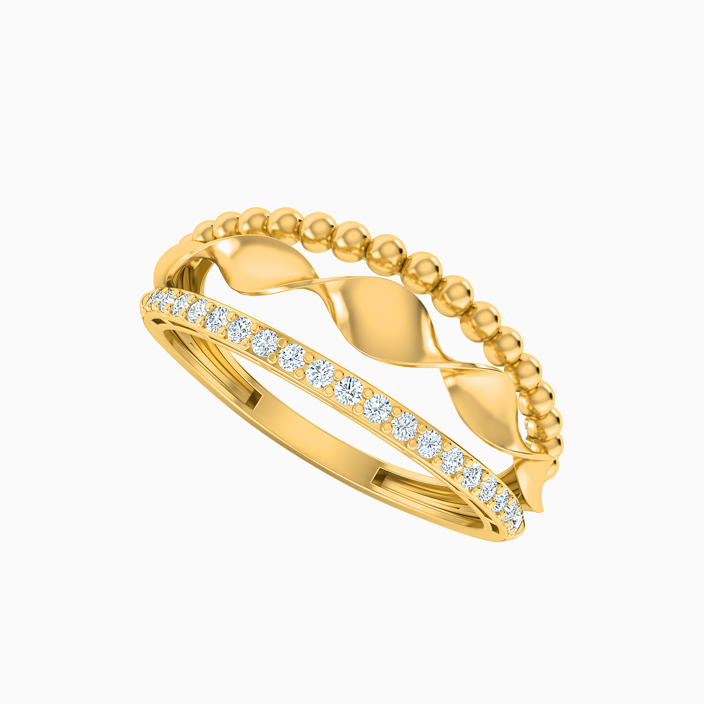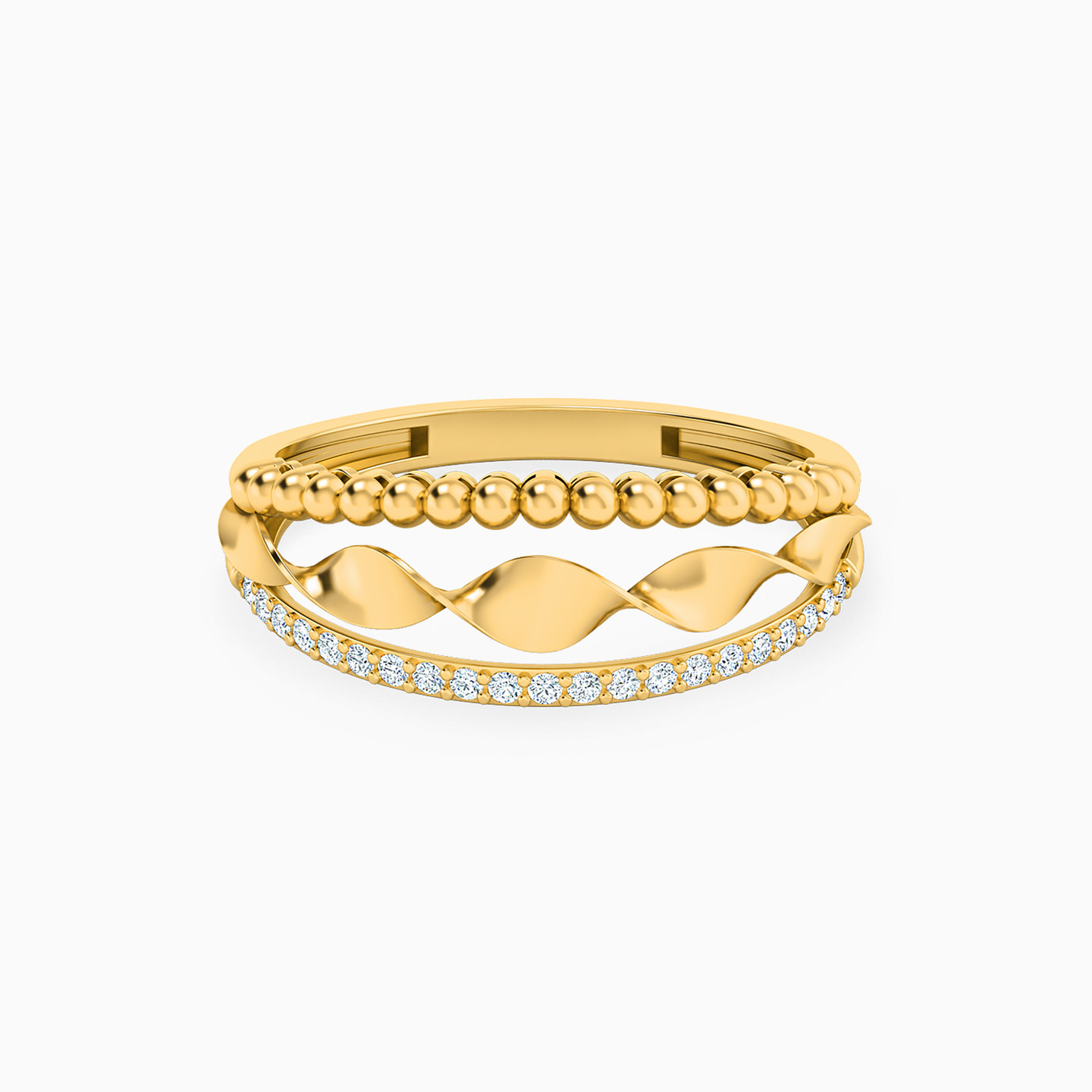 We like to call this ring the three phases of style. Combining three distinct bands - textured, curved and stone studded - this ring from L'azurde Gold will not go unnoticed. We recommend adding this to your everyday outfits and flaunting it at every chance you get.