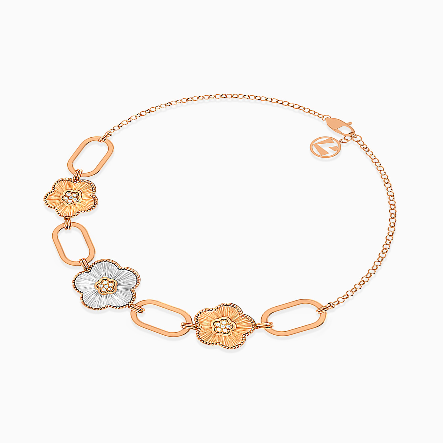 Flower Cubic Zirconia Chain Bracelet in 21K Gold