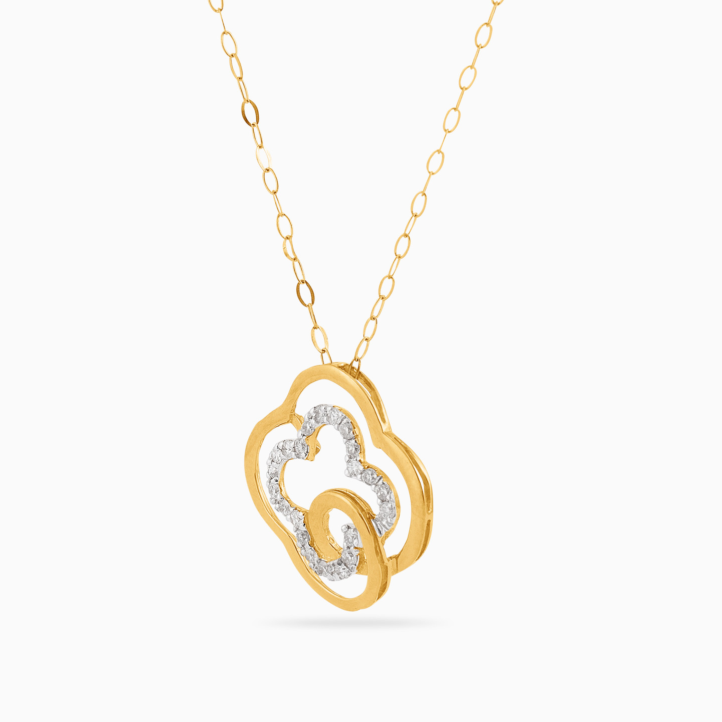 Bring out the elegance in your everyday style with this necklace from L'azurde Diamonds. It features a four clover styled open pendant lined with a layer of brilliant cut diamonds within that drops from a dainty 18-karat yellow gold chain. Wear this over any formal or casual outfit and watch it transition with you from day to evening.