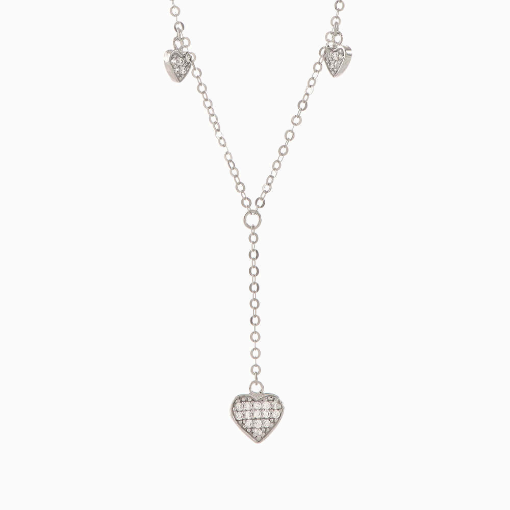 You will love the sparkle this piece lends to your evening look. This elegant drop necklace from L'azurde Gold is cast in 18-karat white gold and features heart charms studded with stones. Its drop style will beautifully accentuate a plunge neckline.