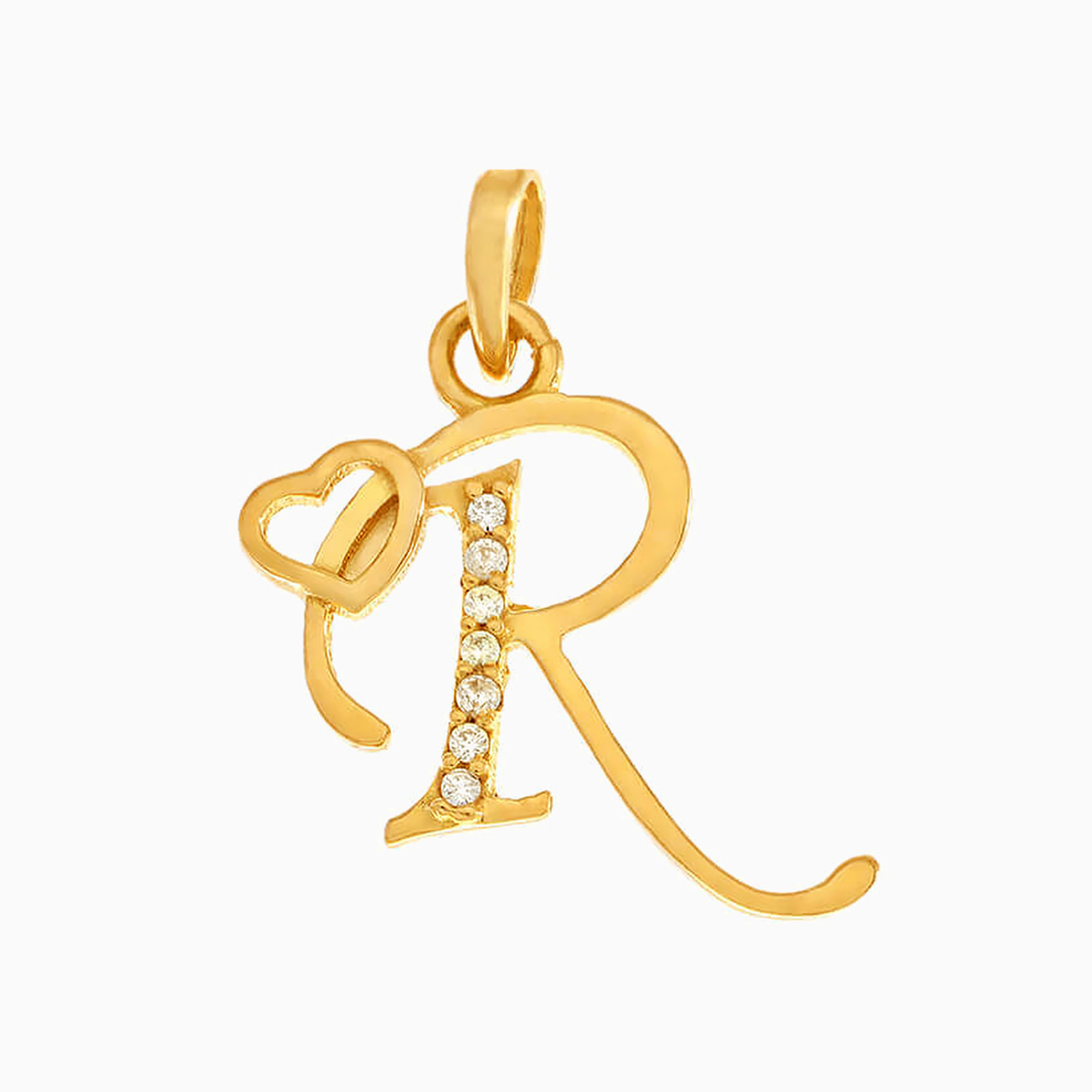 Letter R Cubic Zirconia Pendant in 21K Gold
