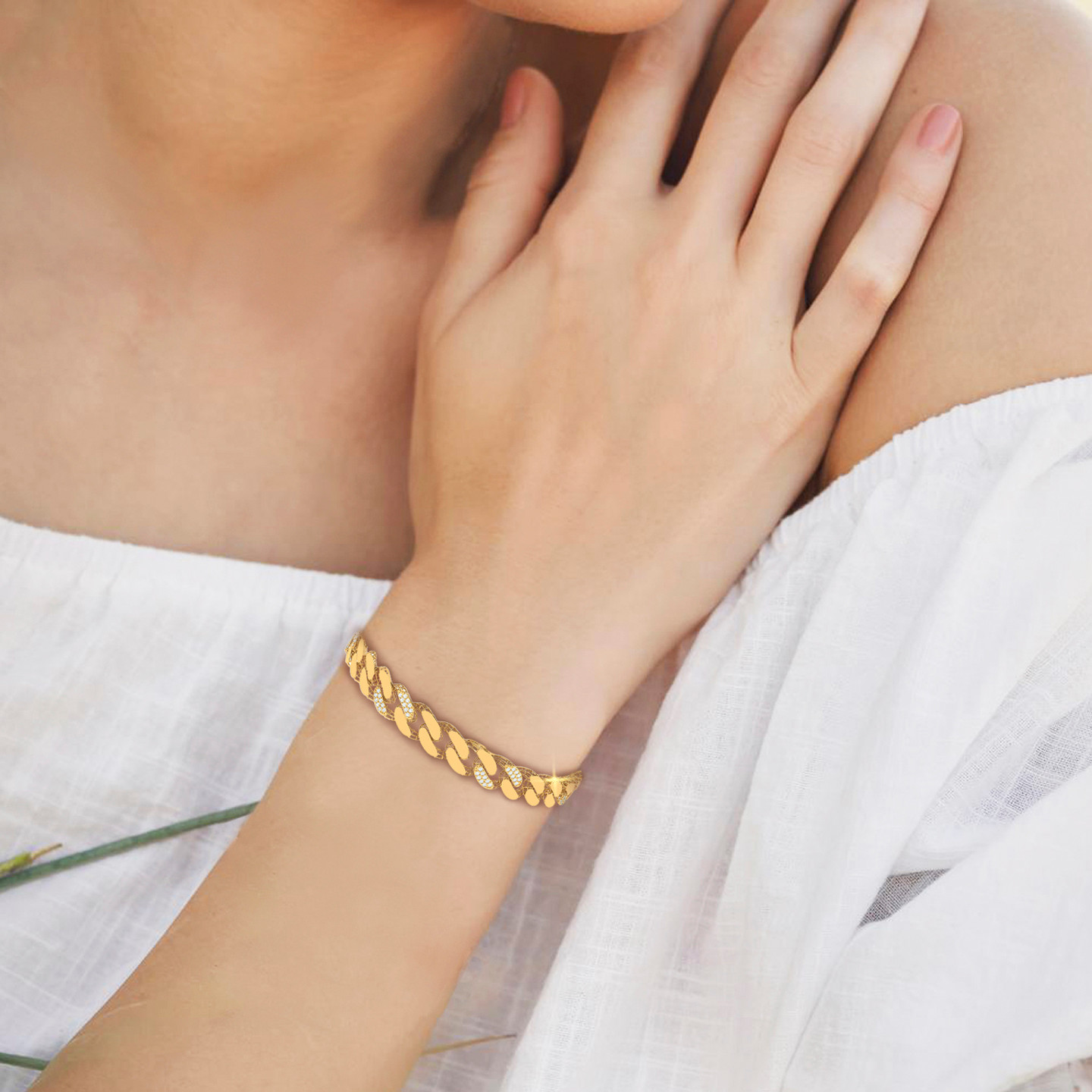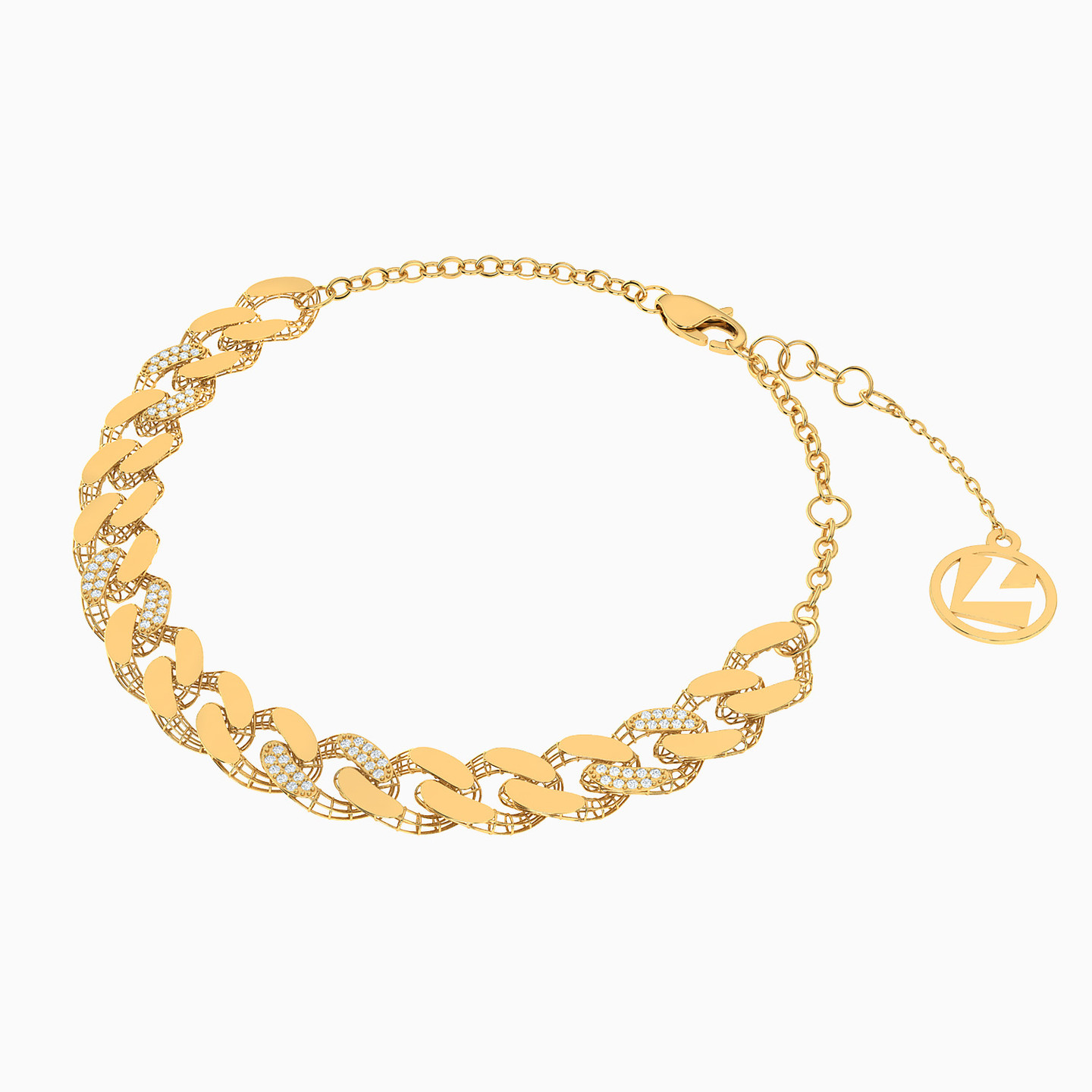 Links Cubic Zirconia Chain Bracelet in 21K Gold